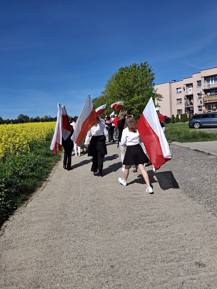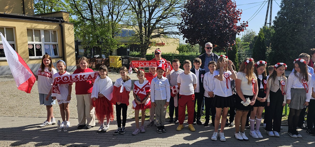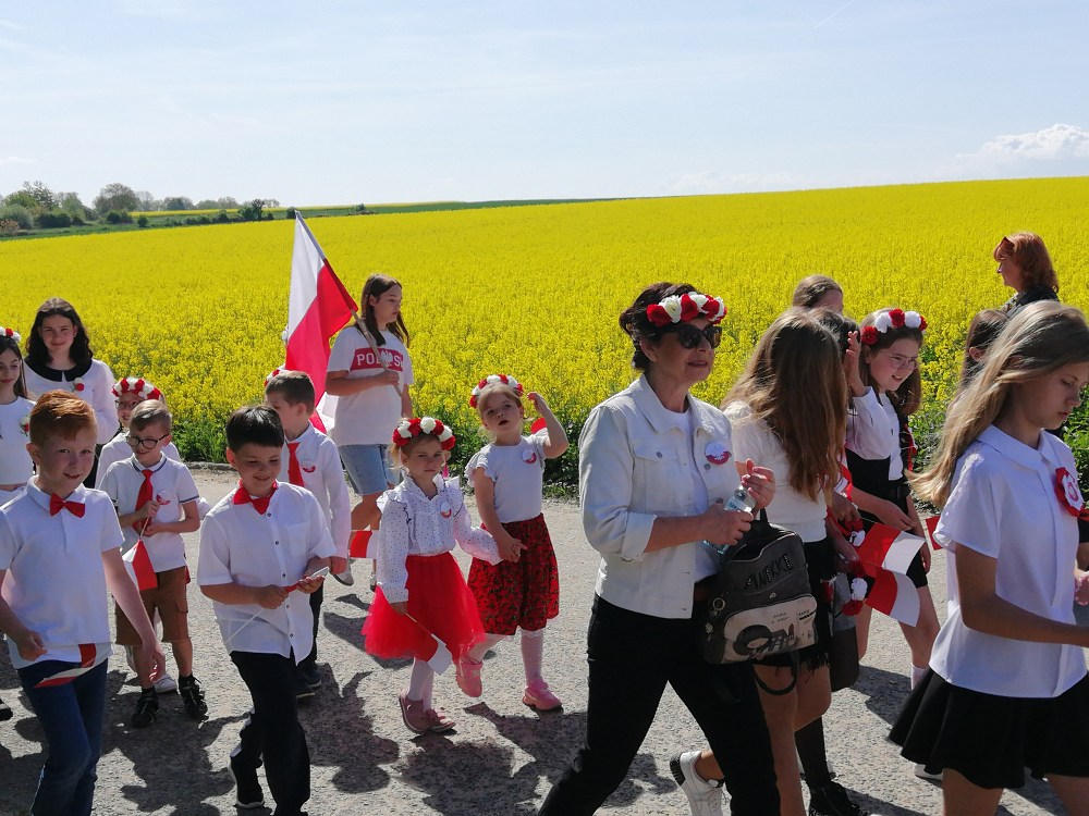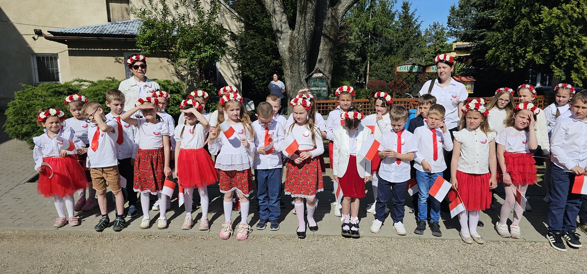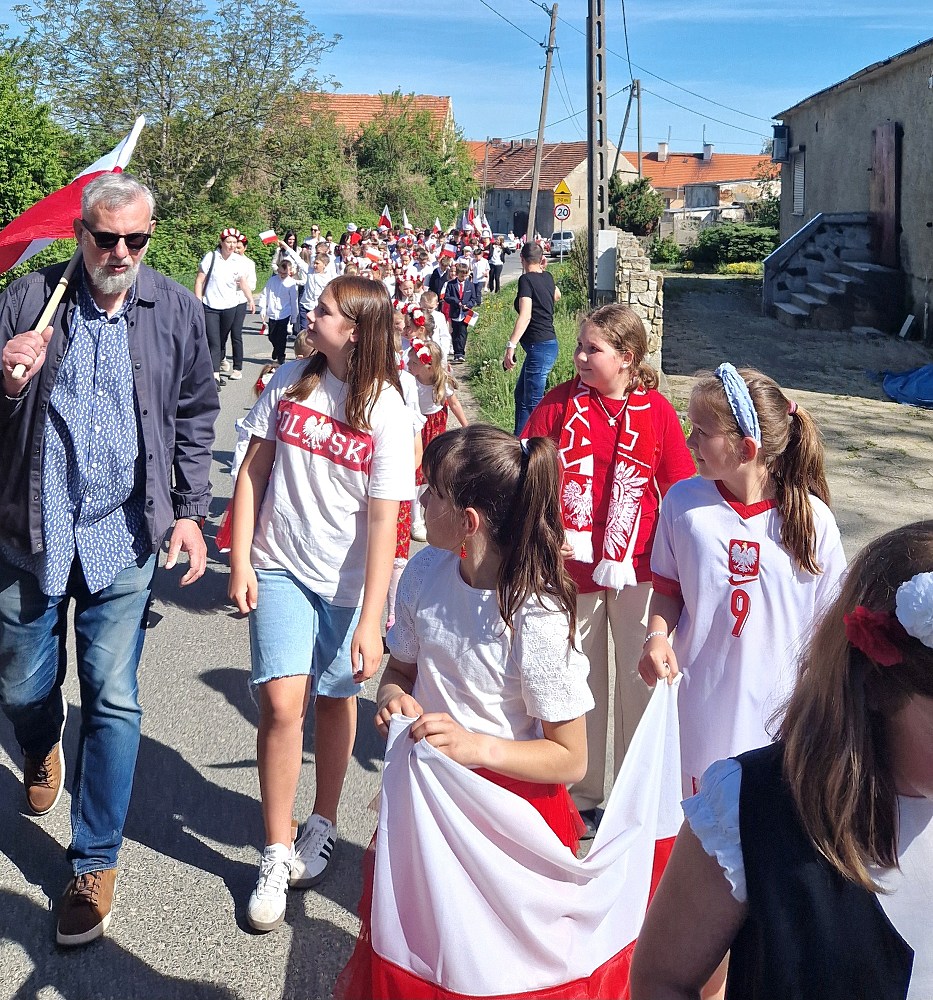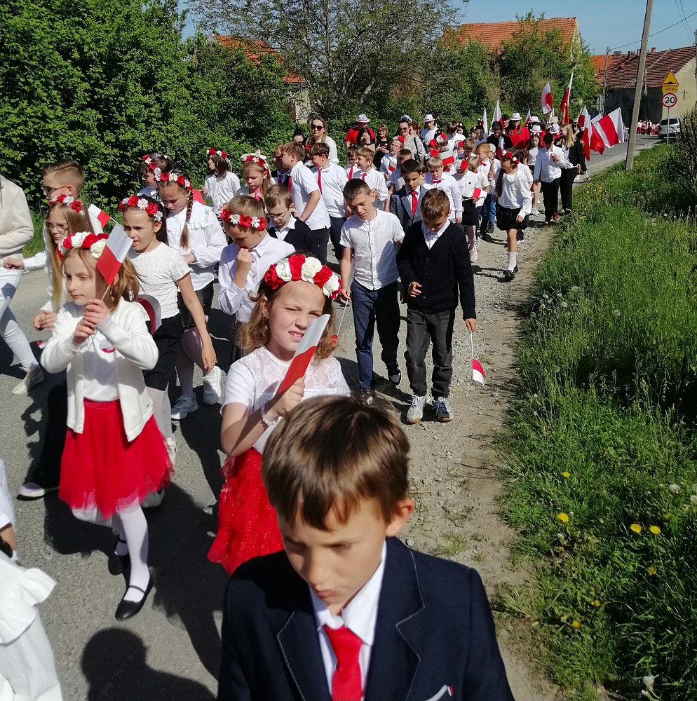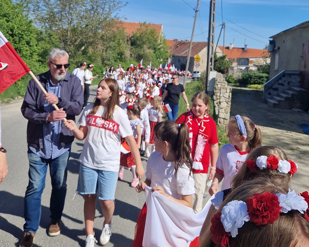 W środę - 30 kwietnia 2025 r. - uczniowie i nauczyciele Zespołu Szkolno – Przedszkolnego w Jaroszowie, jak co roku w przeddzień świąt majowych, wyruszyli w Wiosennym Korowodzie Radości, aby zamanifestować swój patriotyzm i pamięć o historycznych wydarzeniach.