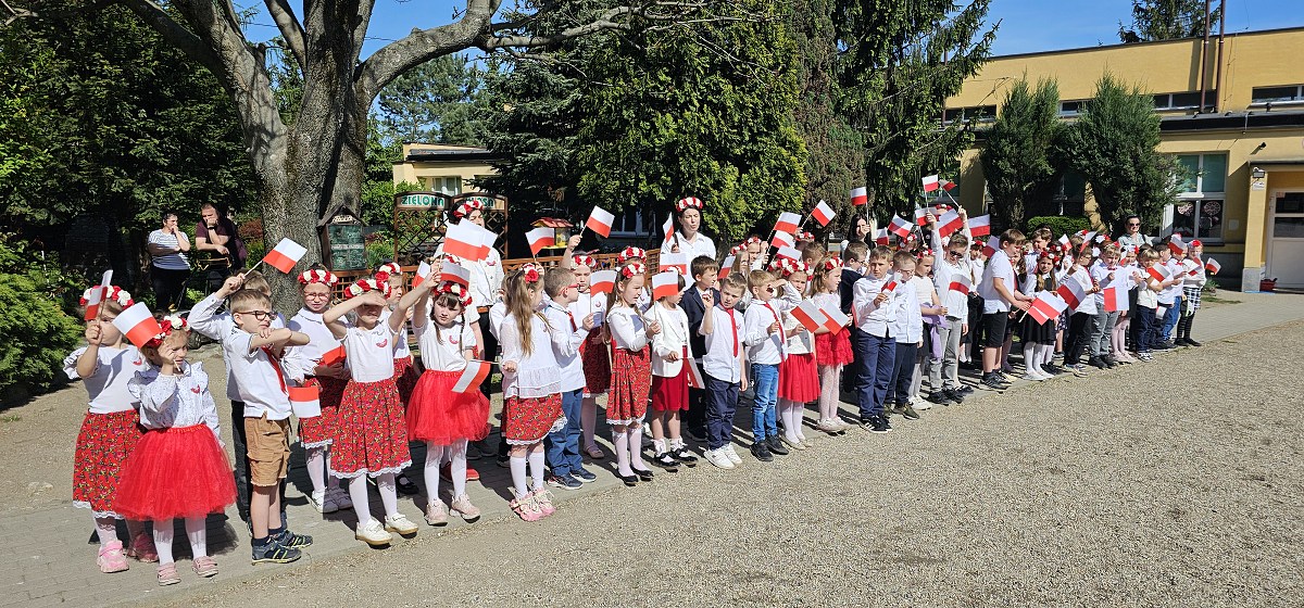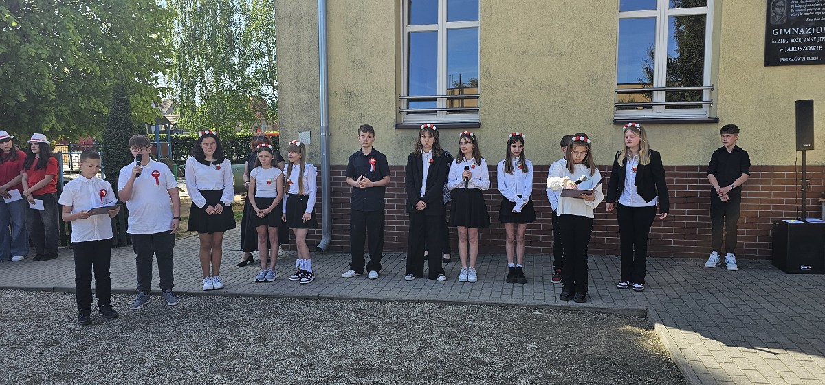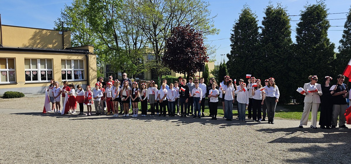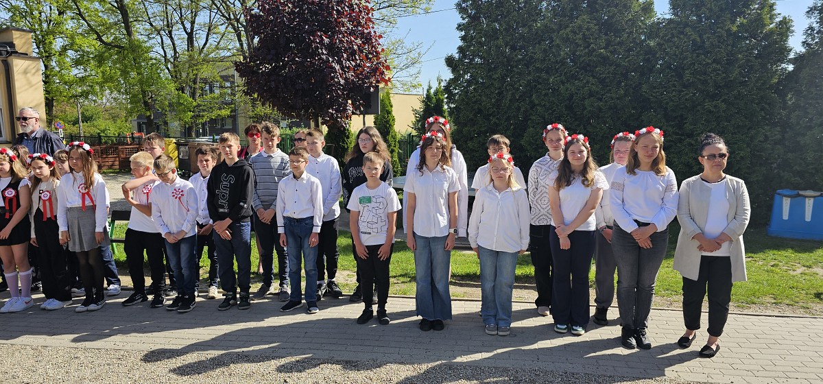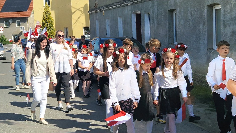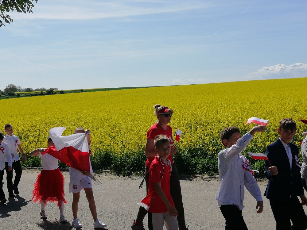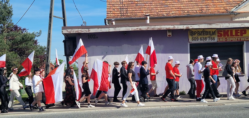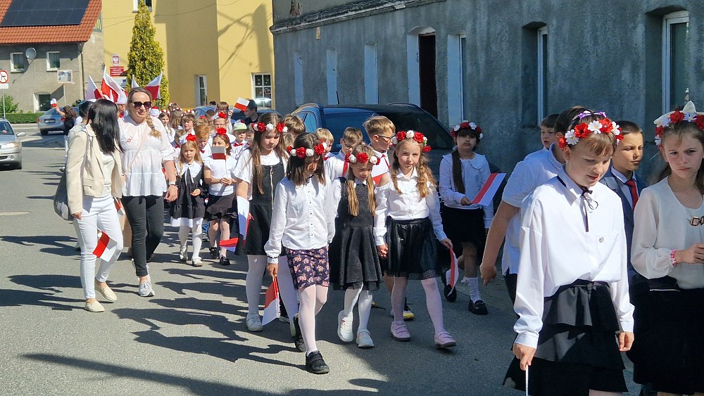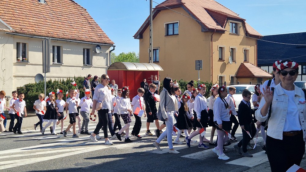 W środę - 30 kwietnia 2025 r. - uczniowie i nauczyciele Zespołu Szkolno – Przedszkolnego w Jaroszowie, jak co roku w przeddzień świąt majowych, wyruszyli w Wiosennym Korowodzie Radości, aby zamanifestować swój patriotyzm i pamięć o historycznych wydarzeniach.