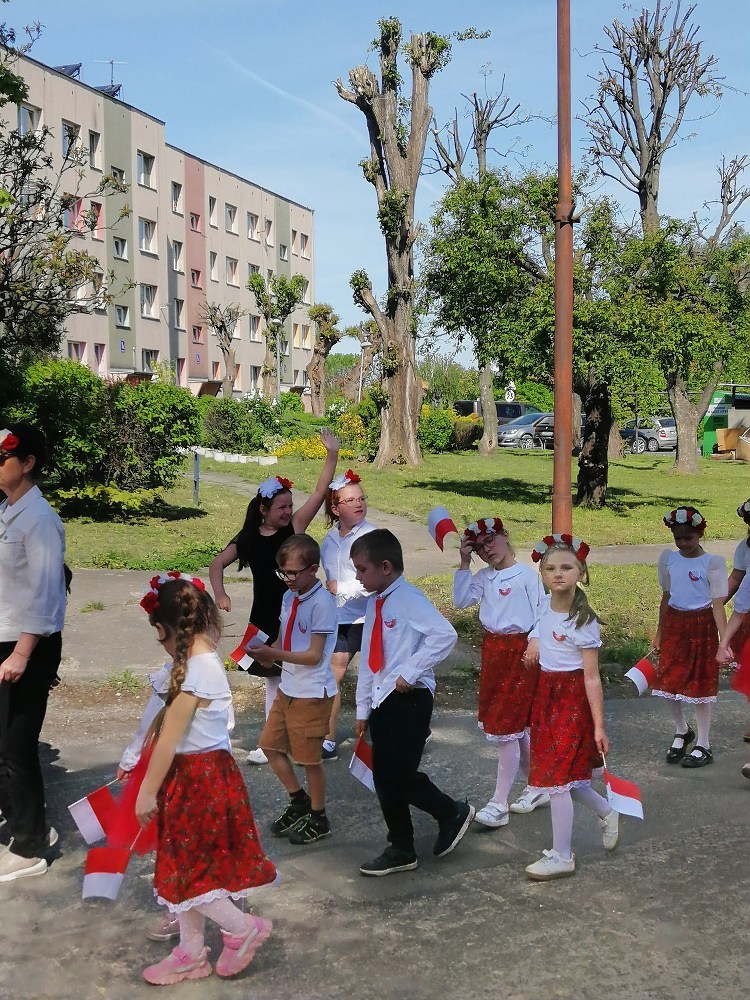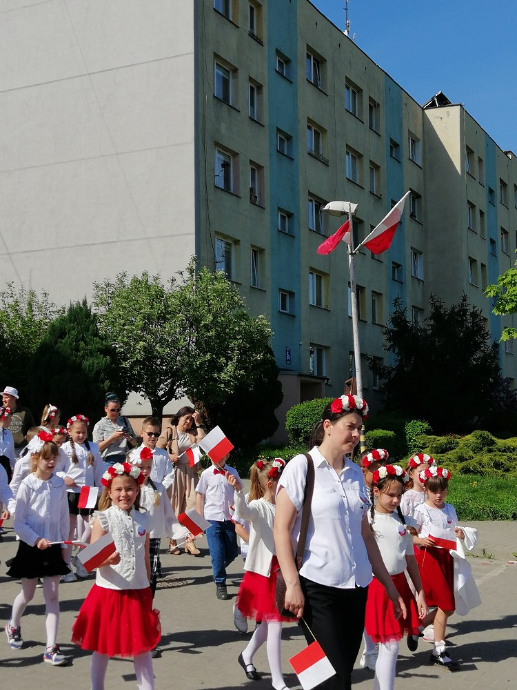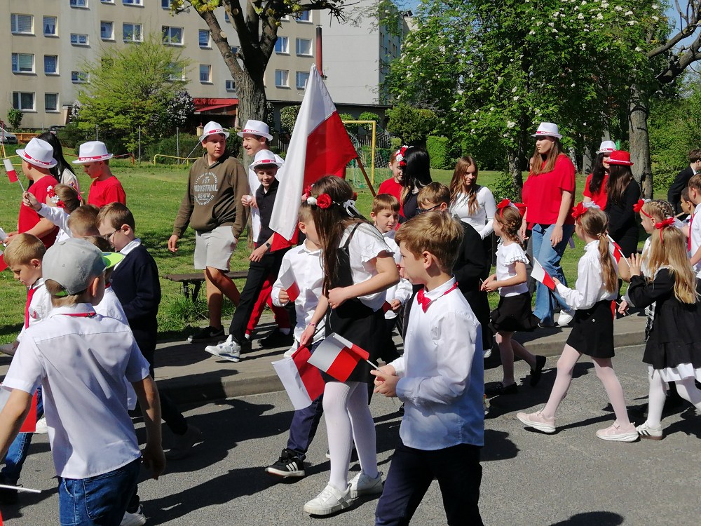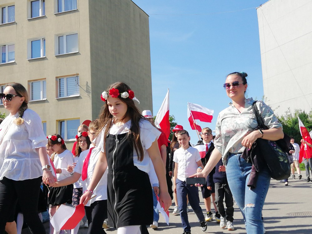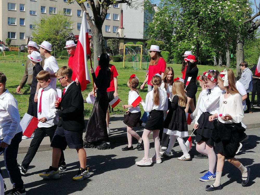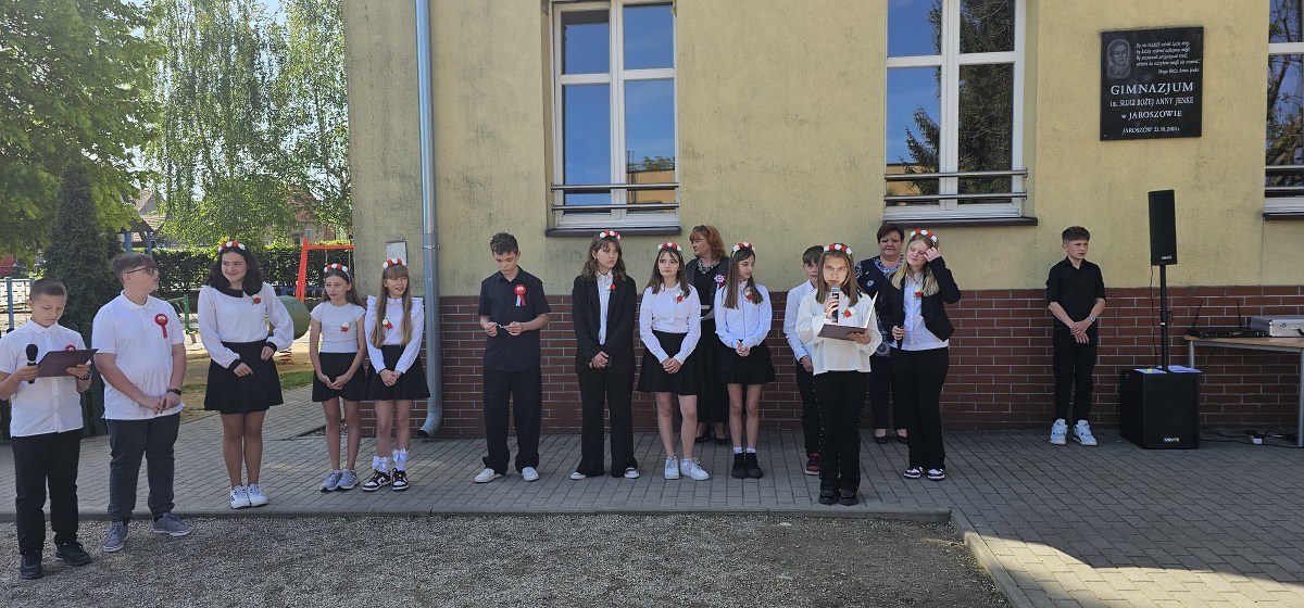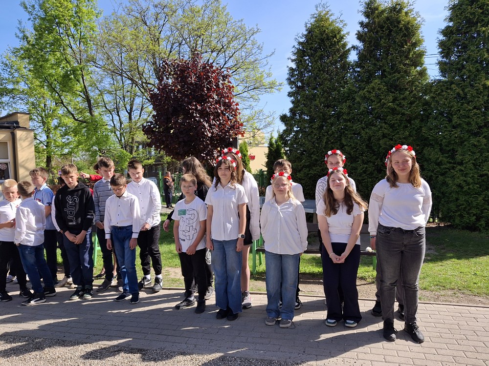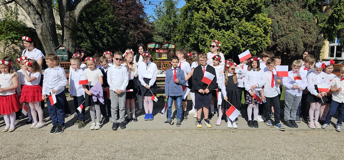 W środę - 30 kwietnia 2025 r. - uczniowie i nauczyciele Zespołu Szkolno – Przedszkolnego w Jaroszowie, jak co roku w przeddzień świąt majowych, wyruszyli w Wiosennym Korowodzie Radości, aby zamanifestować swój patriotyzm i pamięć o historycznych wydarzeniach.