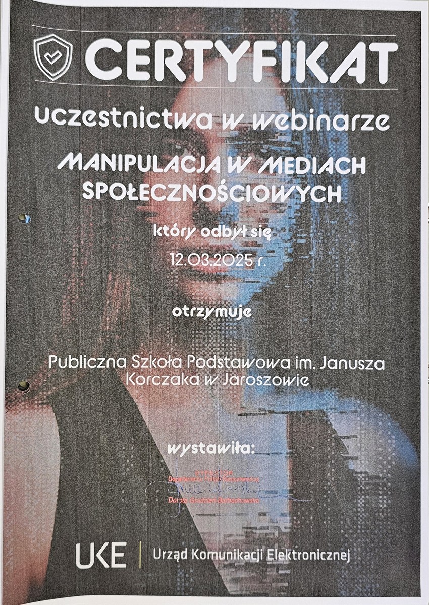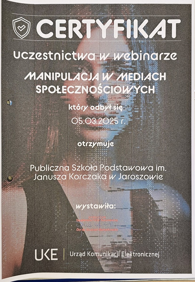 W ramach realizacji zaplanowanych zadań w VI edycji programu pn. „Bezpieczny Dolnoślązak” uczniowie naszej szkoły na lekcjach informatyki poznawali zasady bezpiecznego korzystania z Internetu, uczestnicząc w cyklu webinarów nt.: "Bezpieczne logowanie", "Ochrona danych i wizerunku w sieci" oraz "Manipulacja w mediach społecznościowych".
