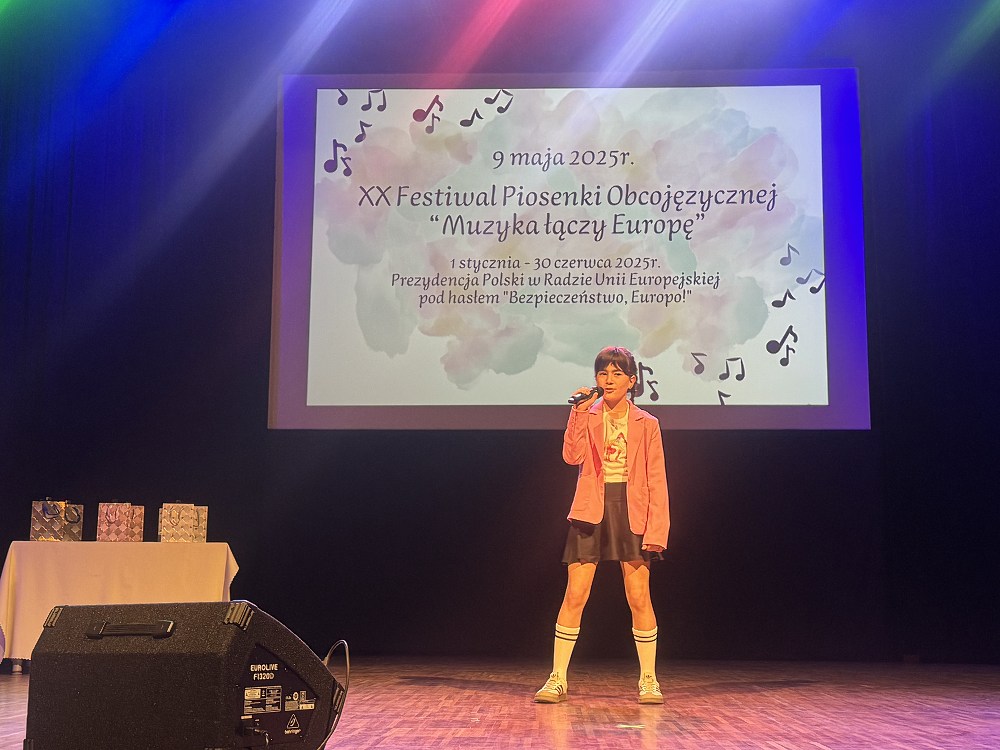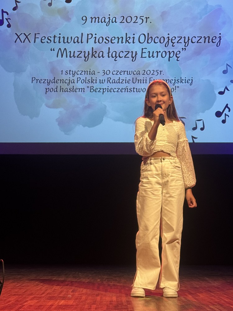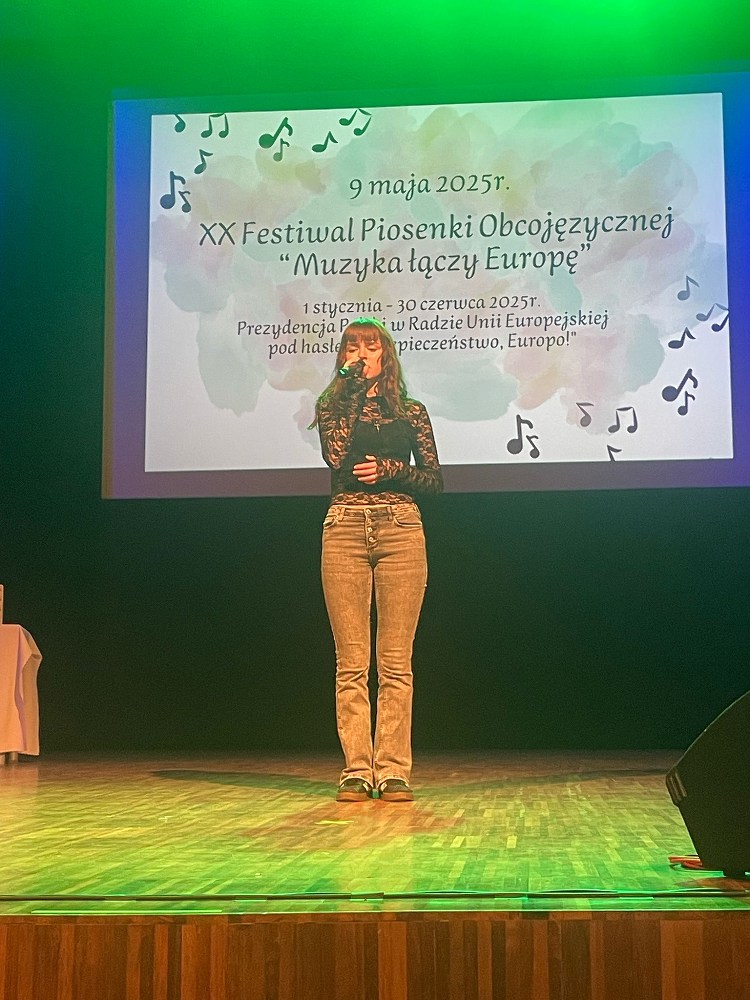 Z roku na rok ten konkurs ma coraz wyższy poziom i wabi na scenę SCK zacne grono chętnych młodych ludzi, którzy chcą zaprezentować swoje talenty wokalne i językowe. Jak co roku uczennice otoczone były opieką i wsparciem przez nauczycielkę Joannę Pietras oraz Rodziców uczennic.