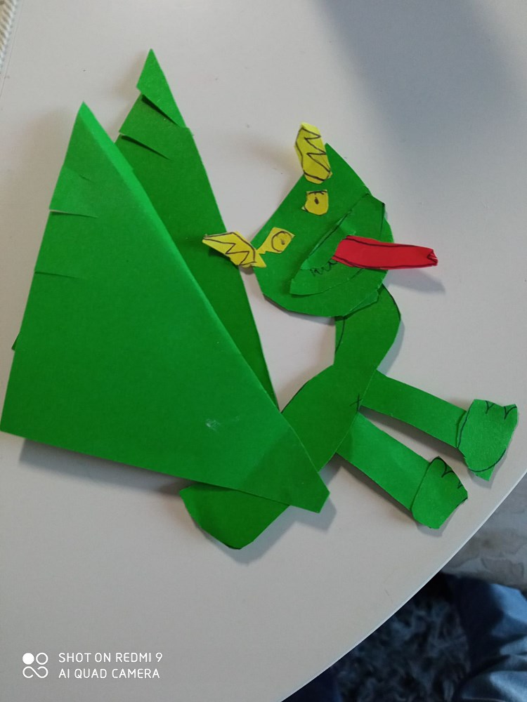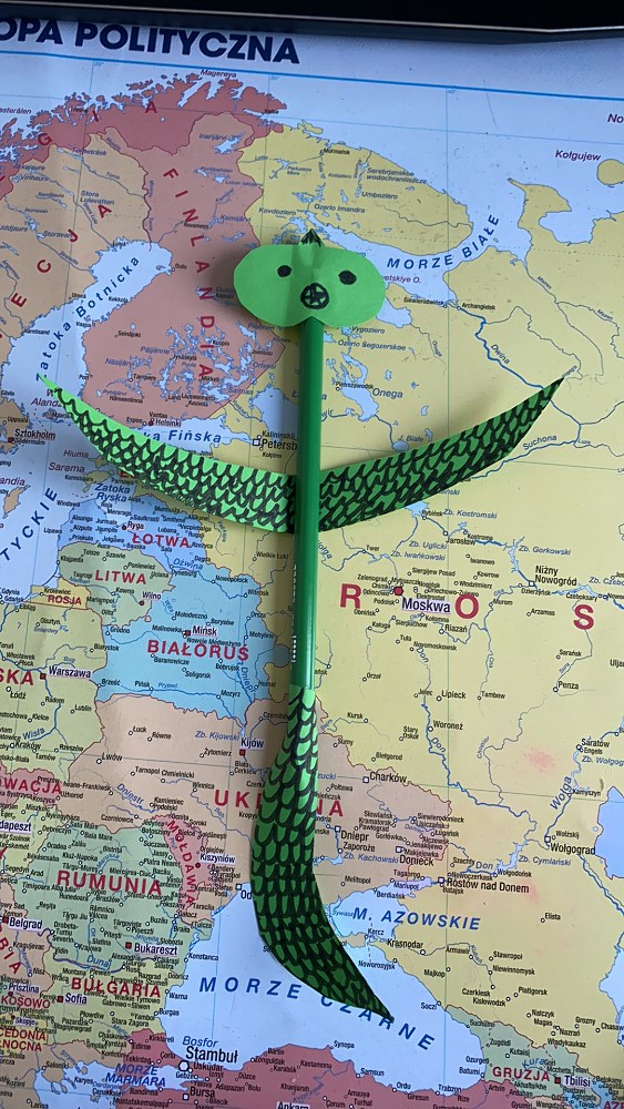 Zapoznali się z pojęciem „dramatu”, czytali legendę o warszawskim Bazyliszku, projektowali kukiełkę – Bazyliszka, a 30 marca obejrzeli przedstawienie pt. „Bambusowa Księżniczka” Teatru Maska w Rzeszowie (w ramach projektu Internetowego Teatru TVP dla Szkół).