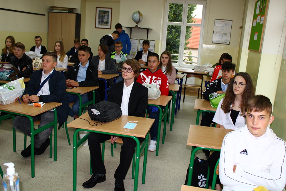 Uczniów w klasach powitała dyrektor szkoły – Beata Jankiewicz, która w ciepłych słowach starała się zapewnić uczniów o tym, że są bezpieczni, ponieważ wielu pracowników szkoły o to zadbało. Zadaniem uczniów jest zdobywanie wiedzy i uzyskiwanie jak najlepszych wyników, ale także dbanie o siebie i o swoje zdrowie.