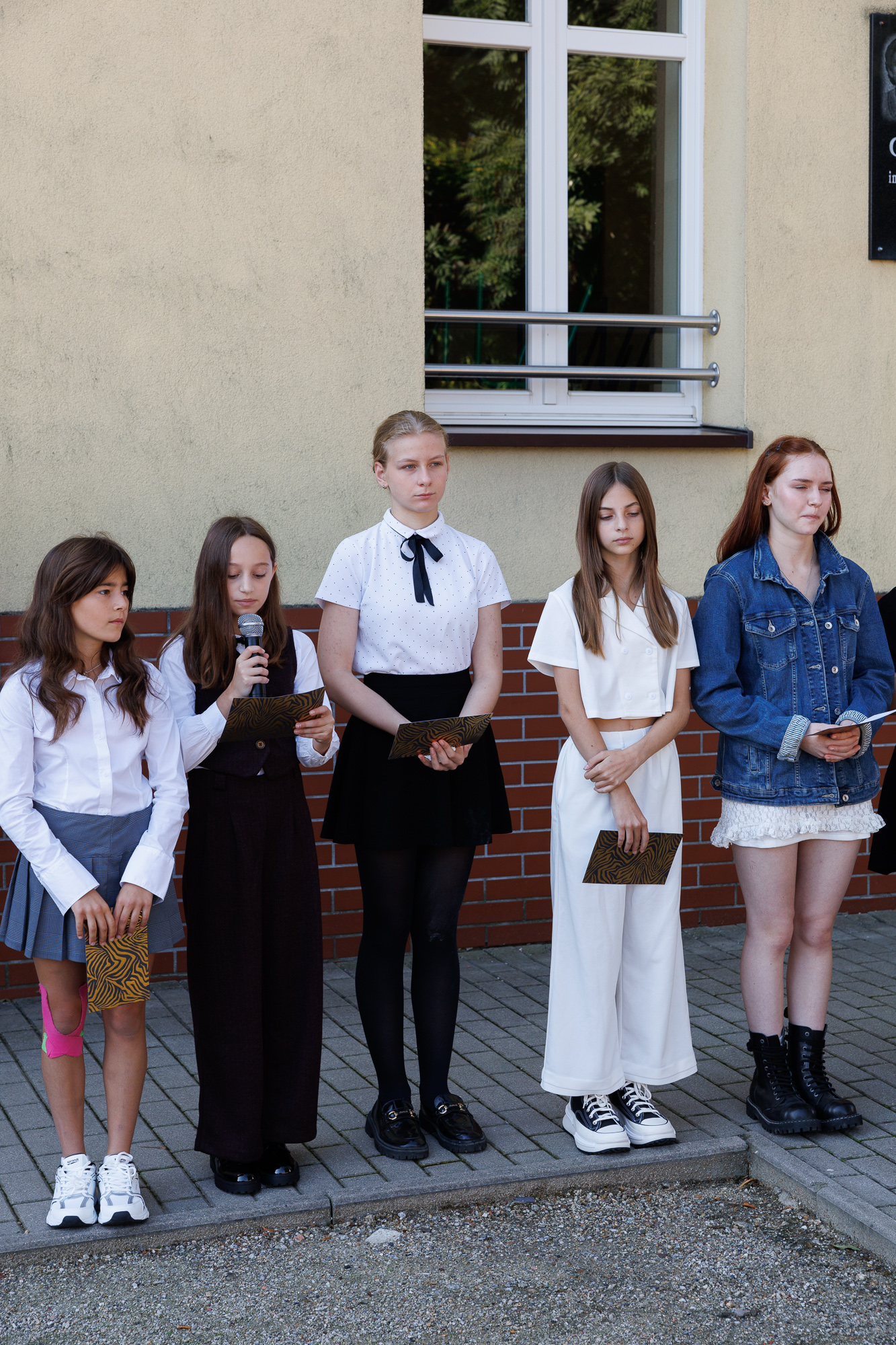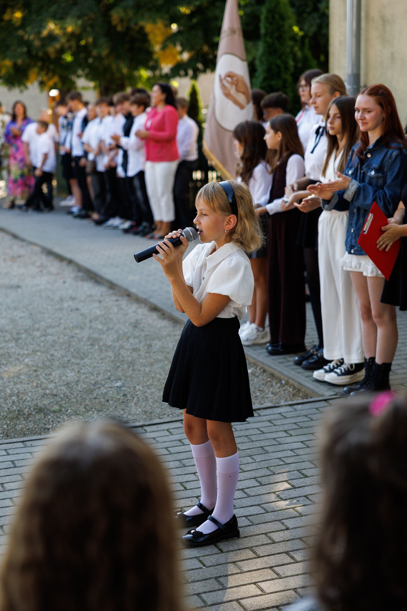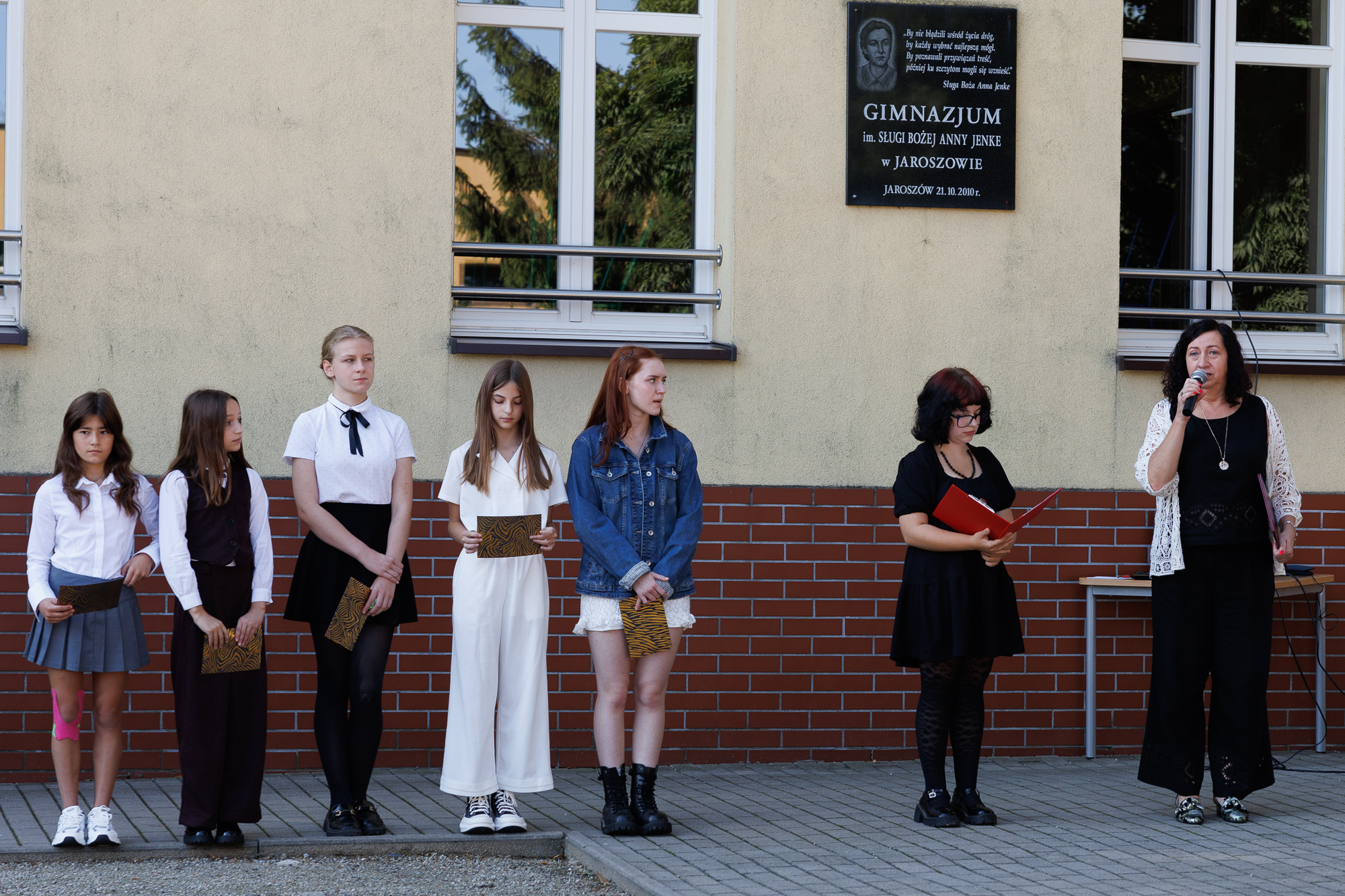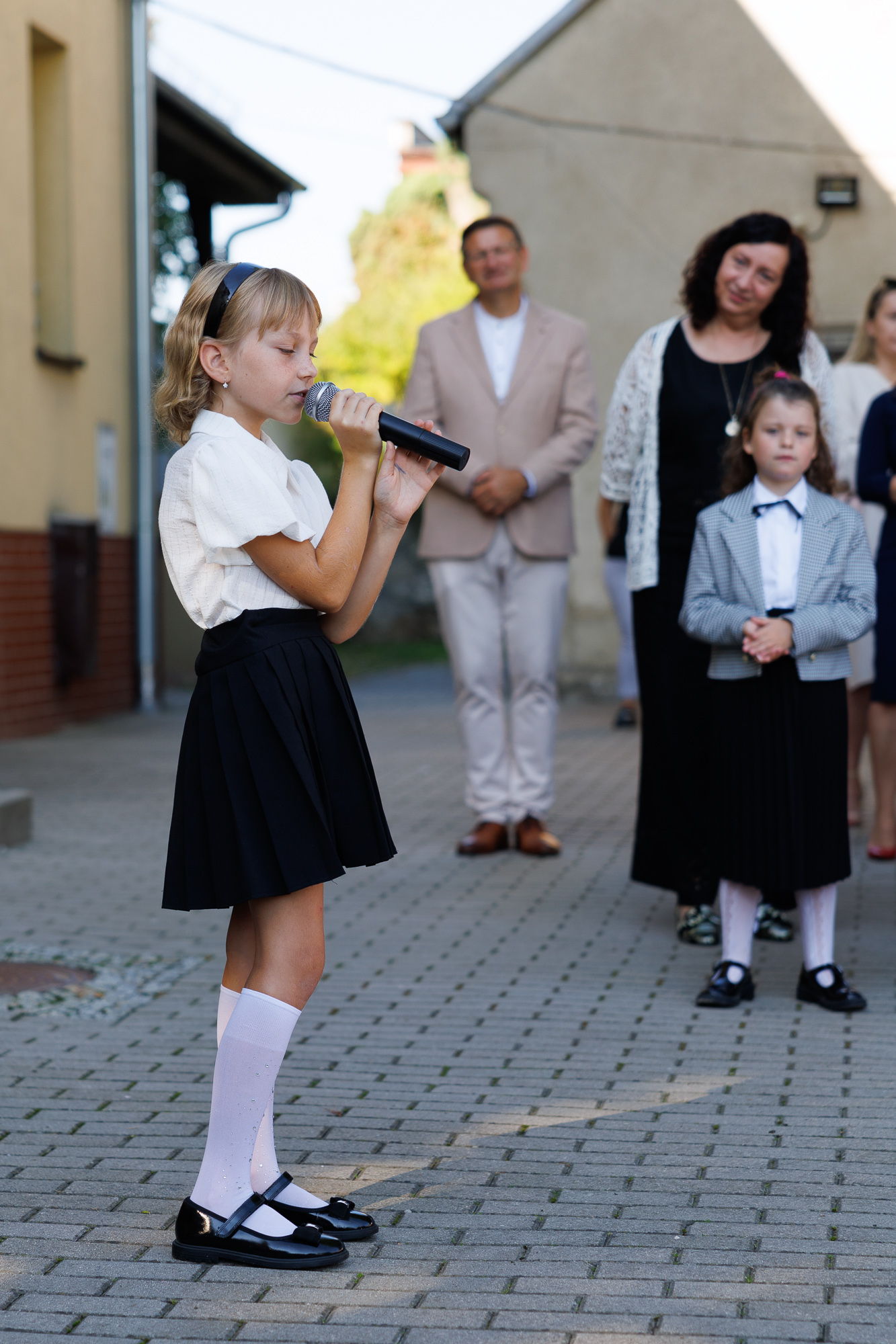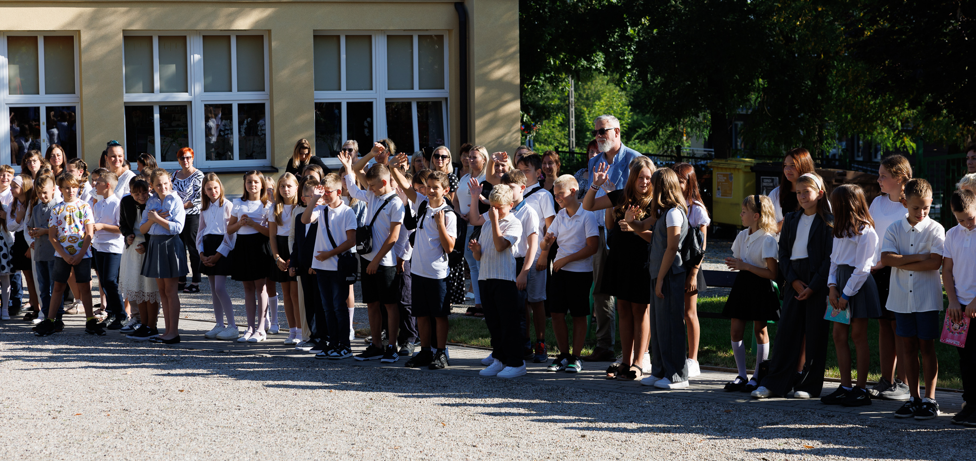 Tegoroczne rozpoczęcie roku szkolnego w Zespole Szkolno – Przedszkolnym w Jaroszowie zostało zorganizowane 1 września 2025 r. na podwórku szkolnym.