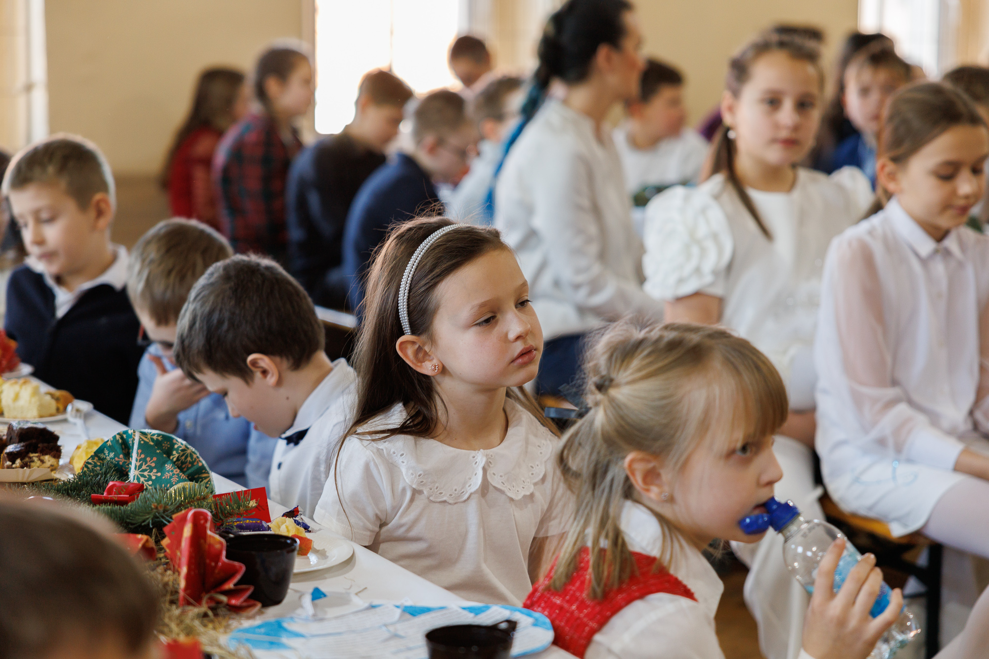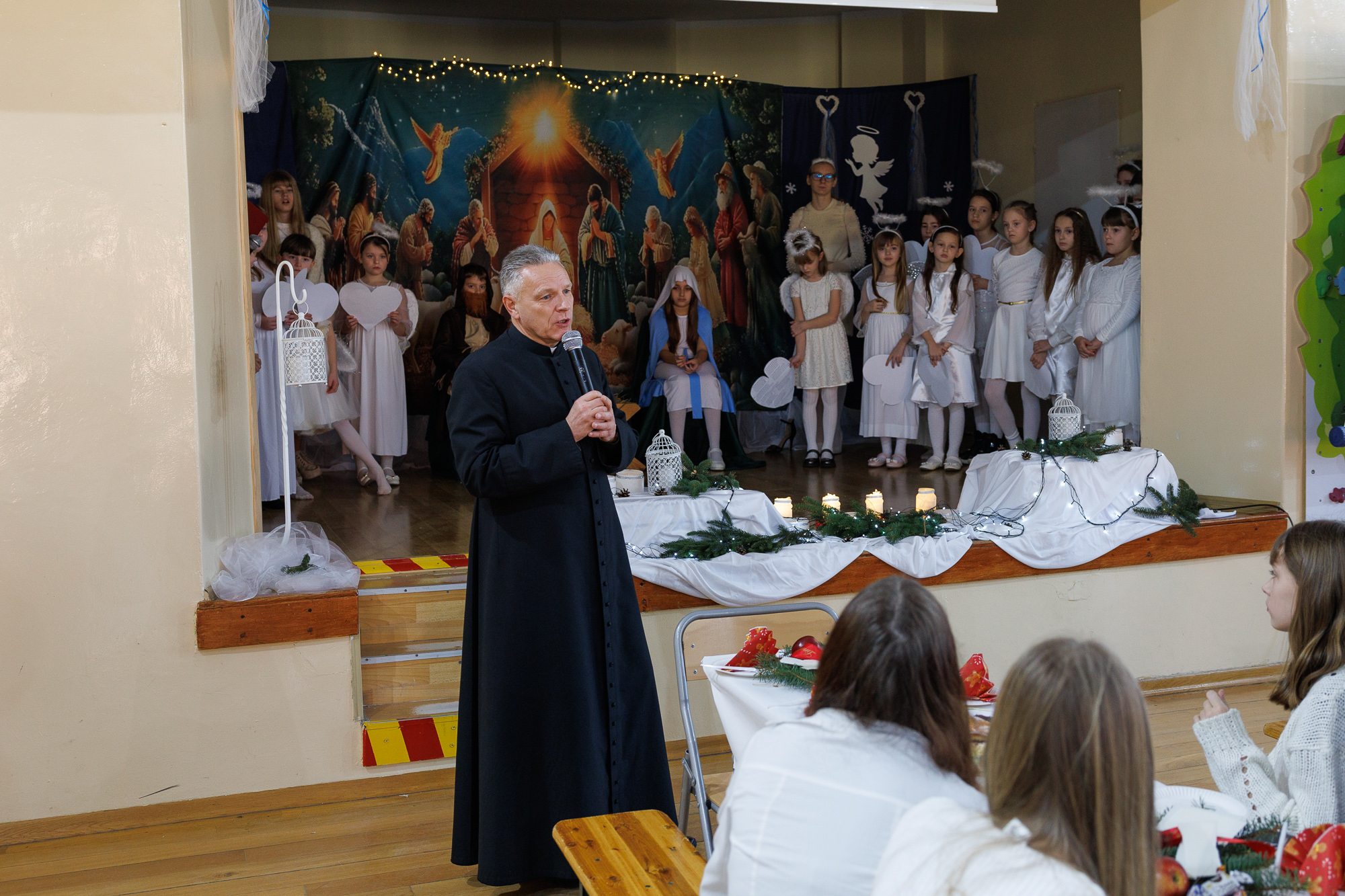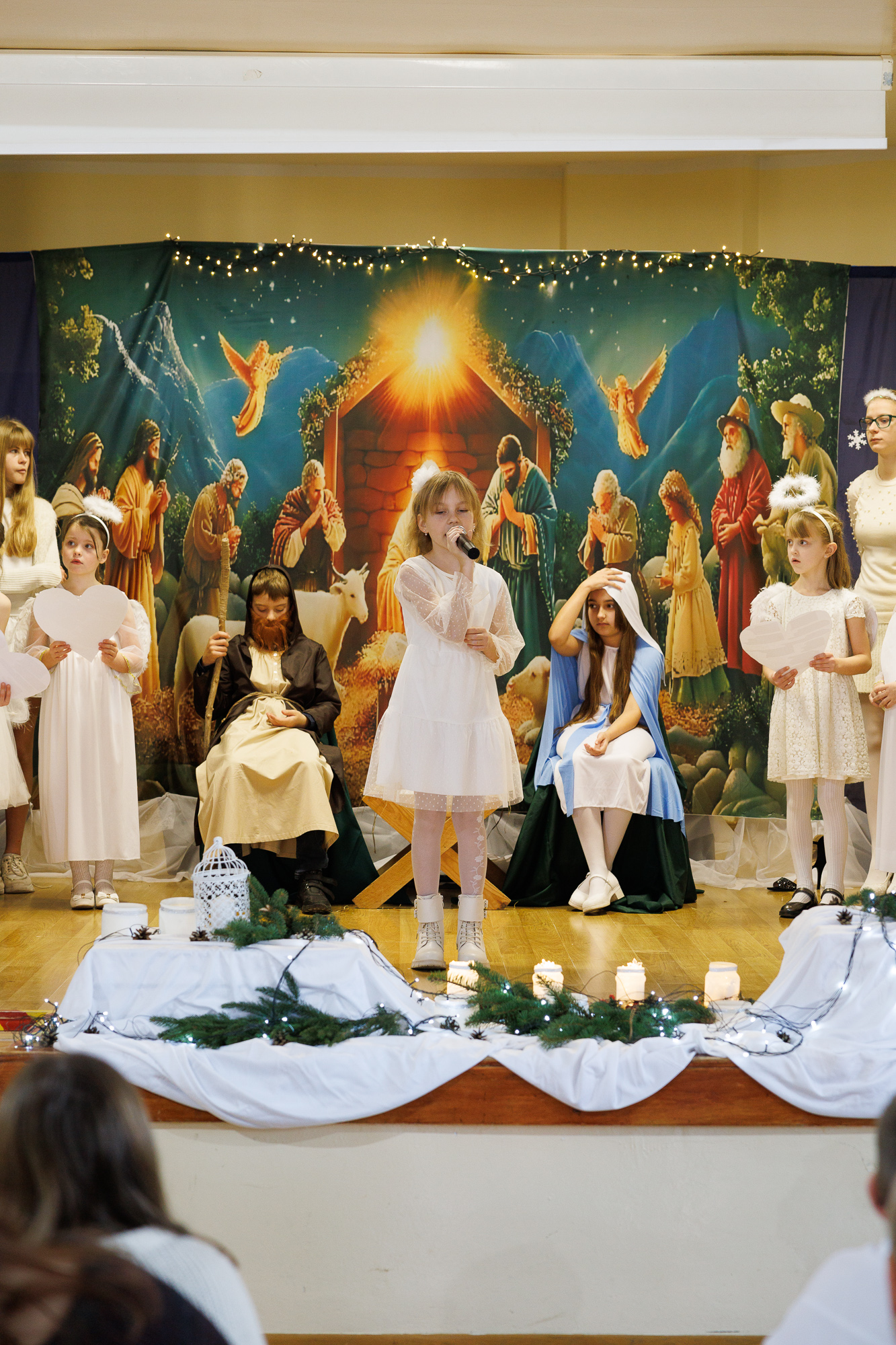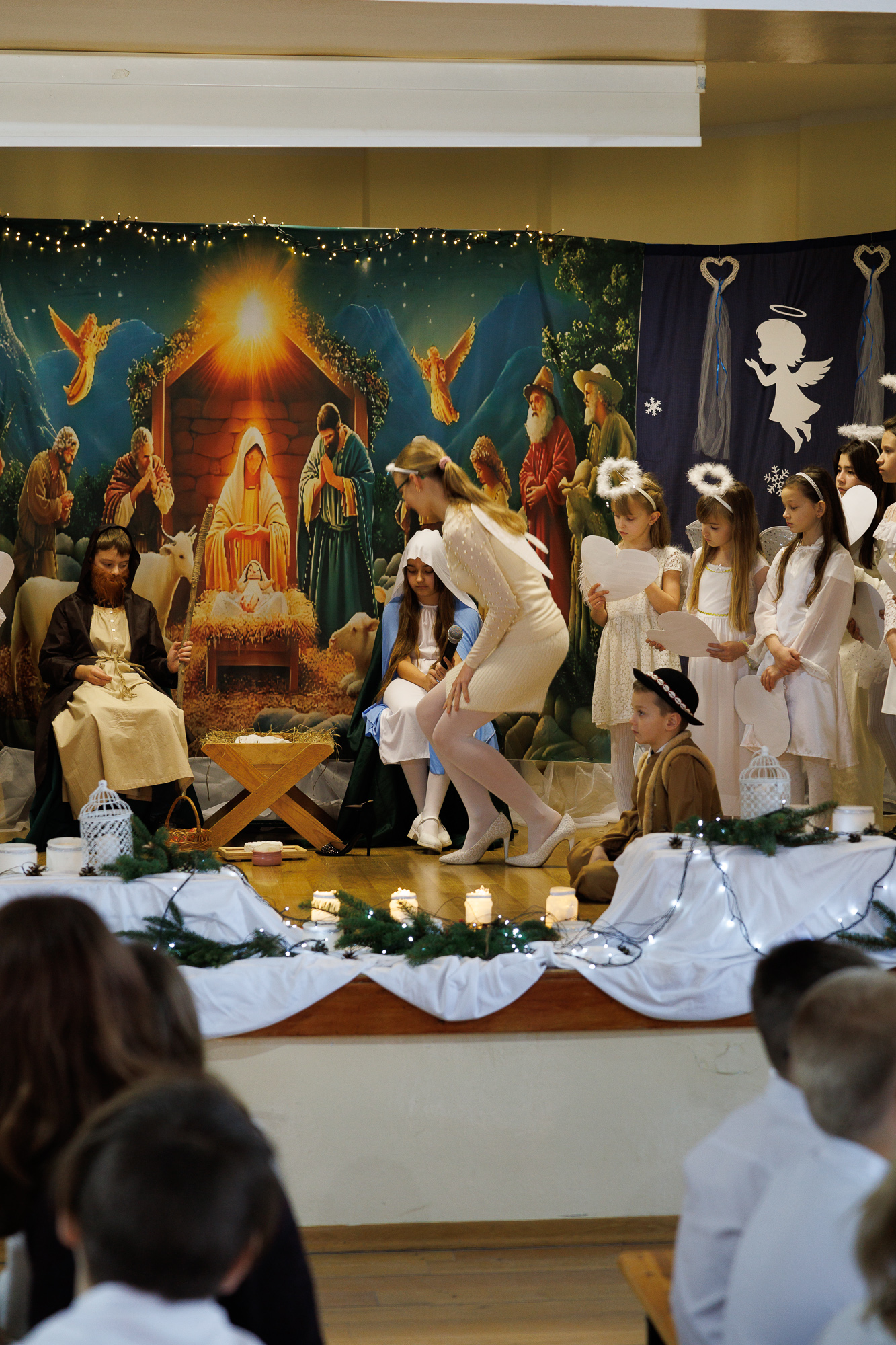 Przedstawienie bożonarodzeniowe wprowadziło uczniów, nauczycieli oraz zaproszonych gości w radosną atmosferę wigilii szkolnej i tradycyjnego wspólnego kolędowania, które zakończyły zajęcia szkolne przed zimową przerwą świąteczną.