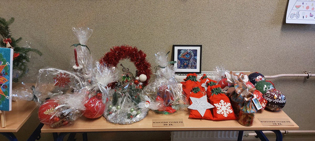 Każde gusta zostały zaspokojone, każdy znalazł coś dla siebie, bo naprawdę było w czym wybierać. Dzięki wielkiemu zaangażowaniu wielu osób – nauczycieli, uczniów i rodziców – Kiermasz Bożonarodzeniowy kolejny raz okazał się wielkim sukcesem. Członkowie Samorządu Uczniowskiego przeliczyli pieniądze z puszek i okazało się, że pozyskano 1 960 zł, które zostały przekazane Radzie Rodziców.
