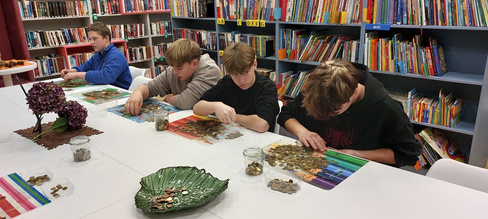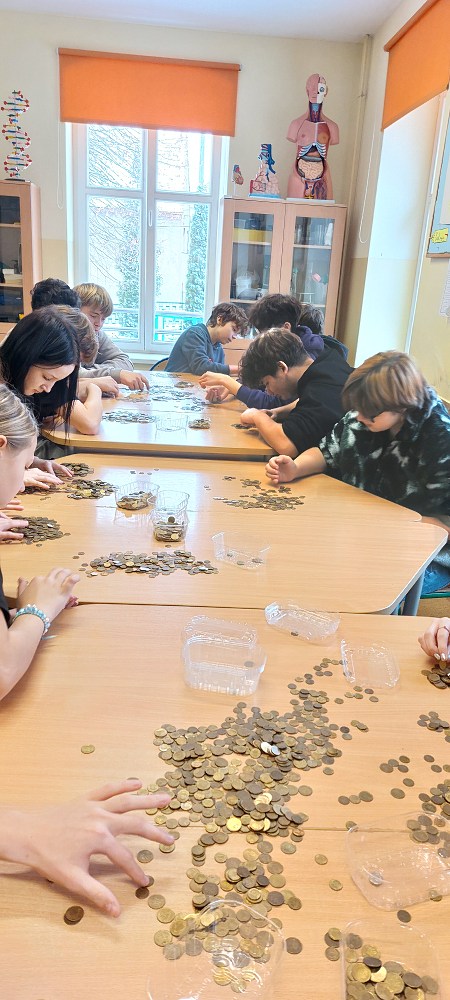W tym roku, liczeniem monet zajęli się niezawodni ósmoklasiści, którzy także odpowiednio zapakowali monety w pięć kartonów.