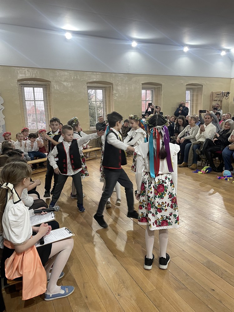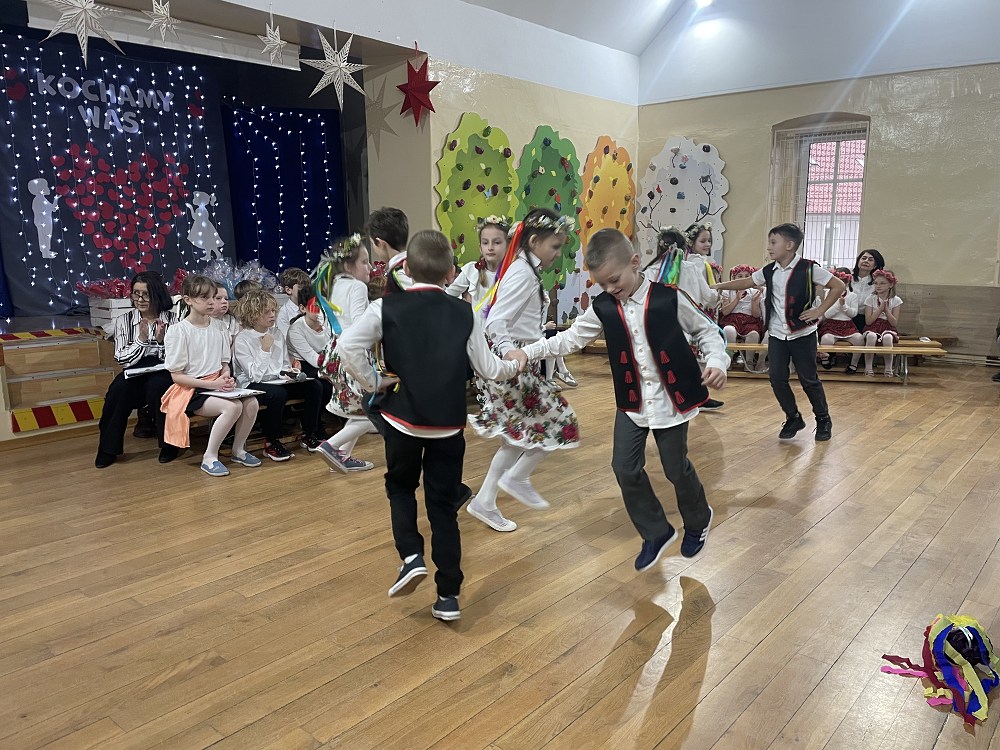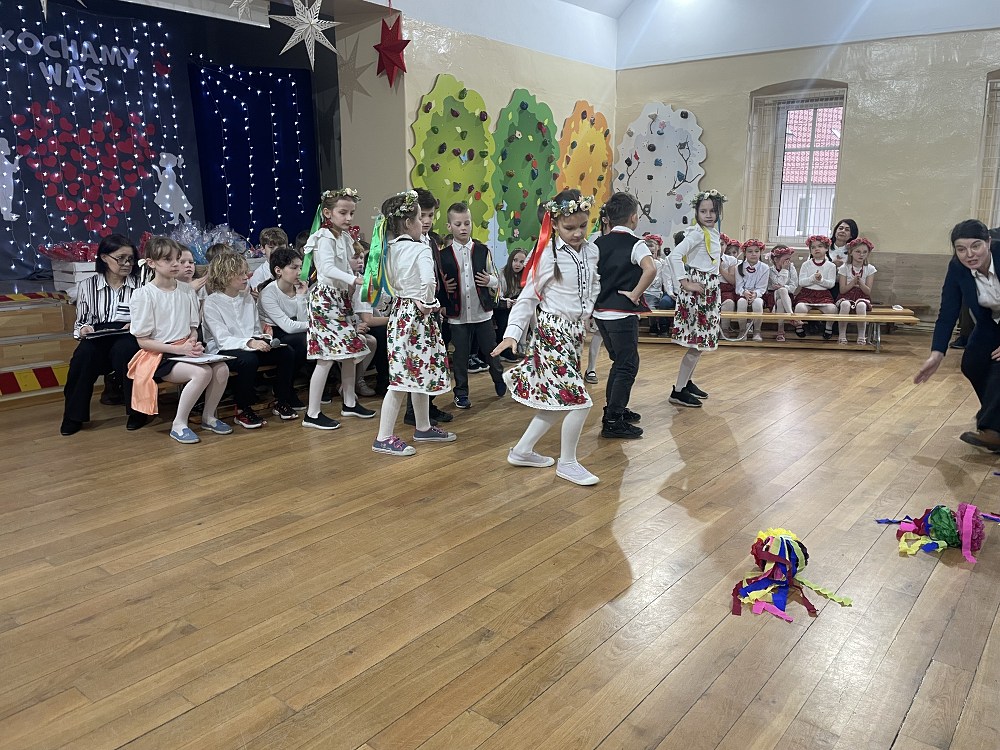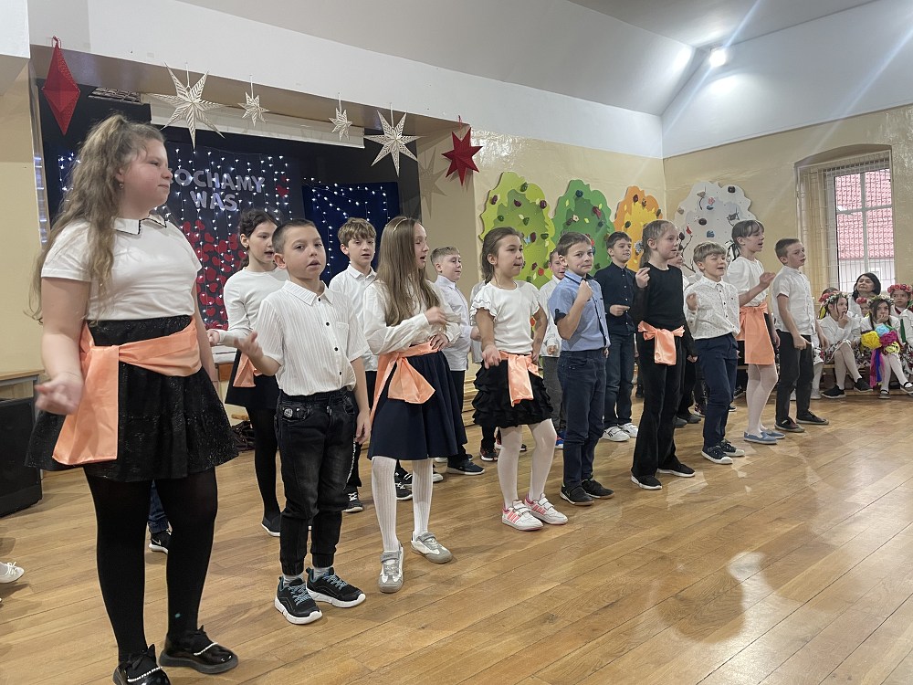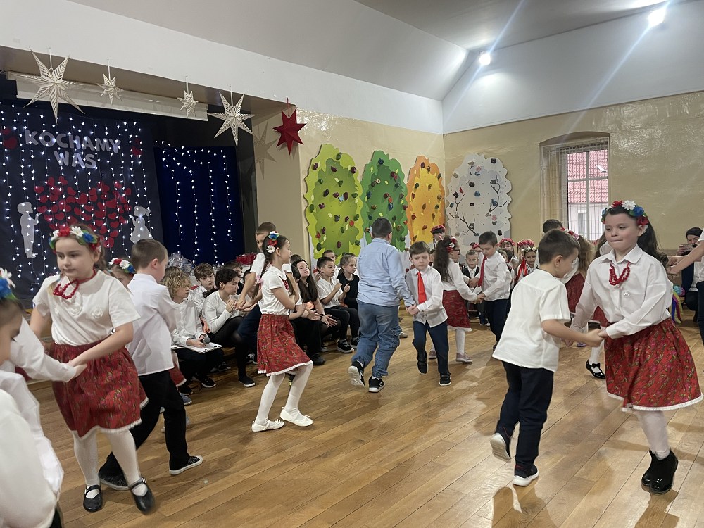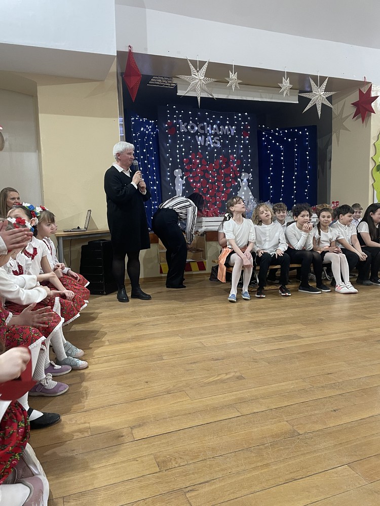 Każda z klas miała przygotowaną piosenkę oraz taniec. W programie artystycznym pojawiły się układy taneczne znanych tańców: krakowiaka, polki, zorby, a także trojaka. Kulminacyjnym punktem programu było wręczenie własnoręcznie wykonanych upominków - laurek. Spotkanie zakończyło pamiątkowymi zdjęciami oraz wzruszającymi uściskami.