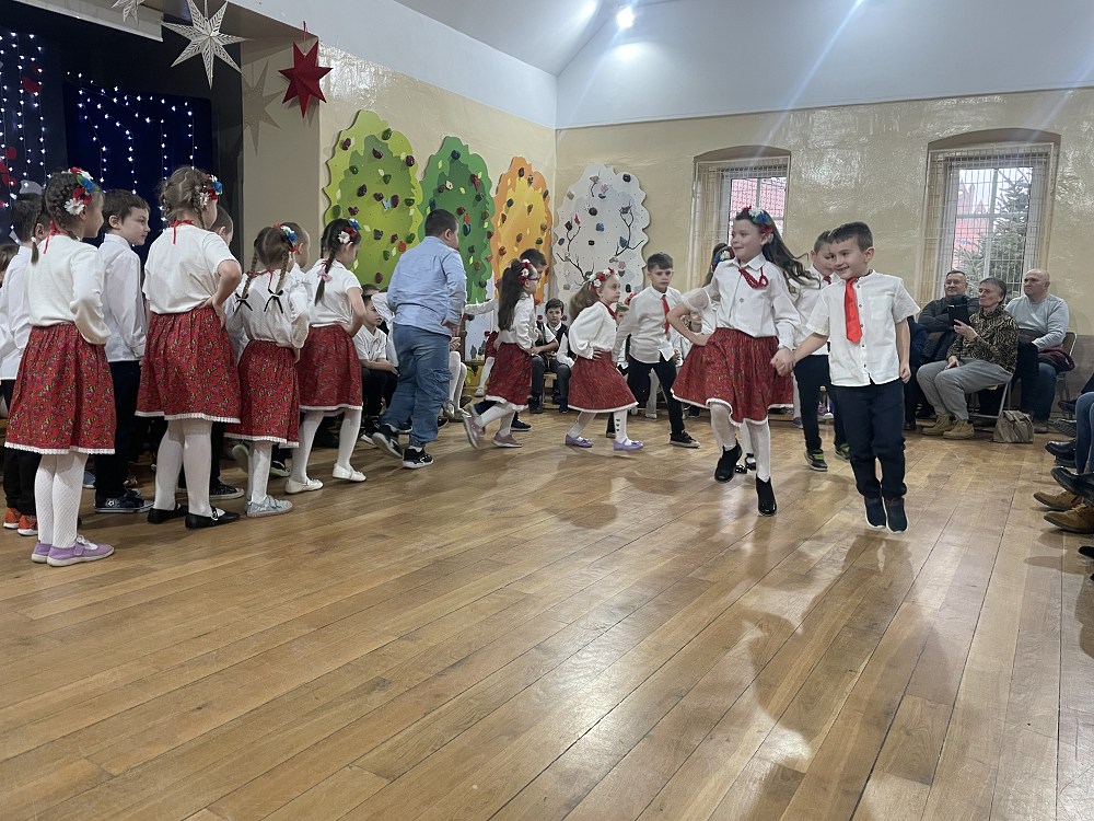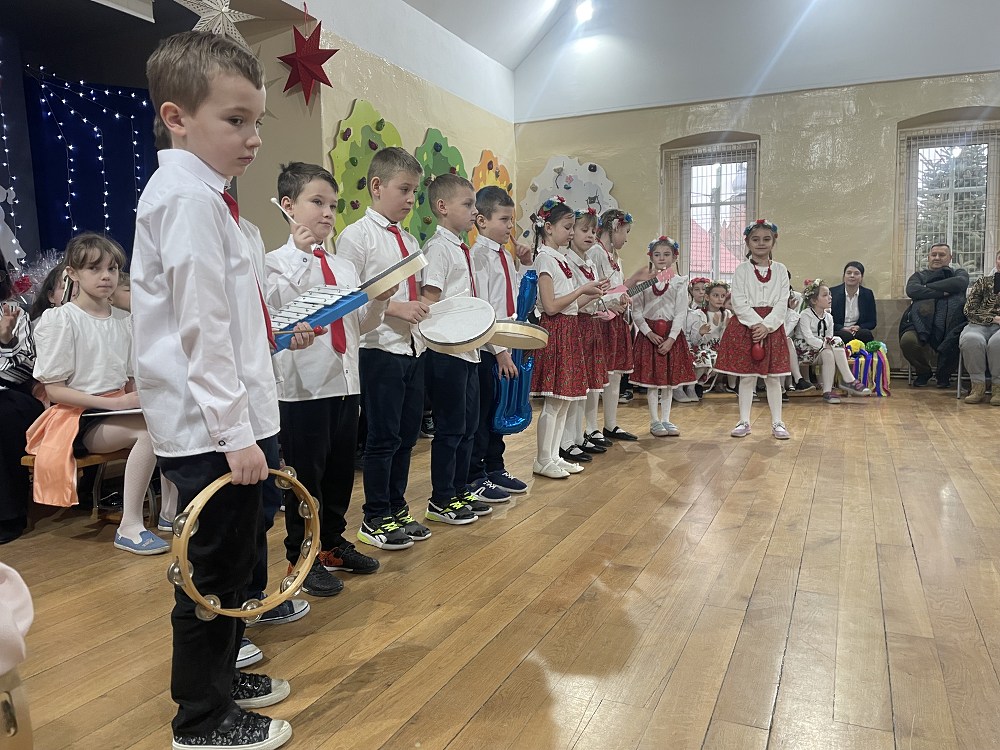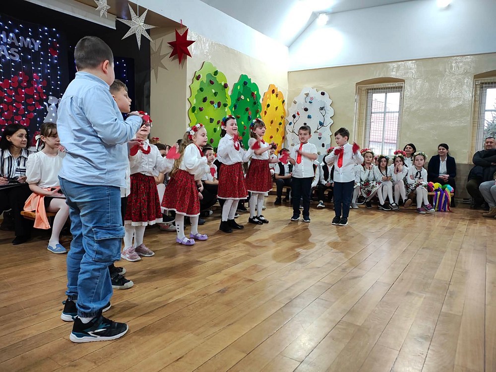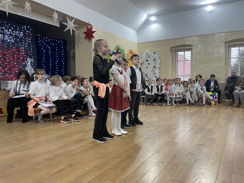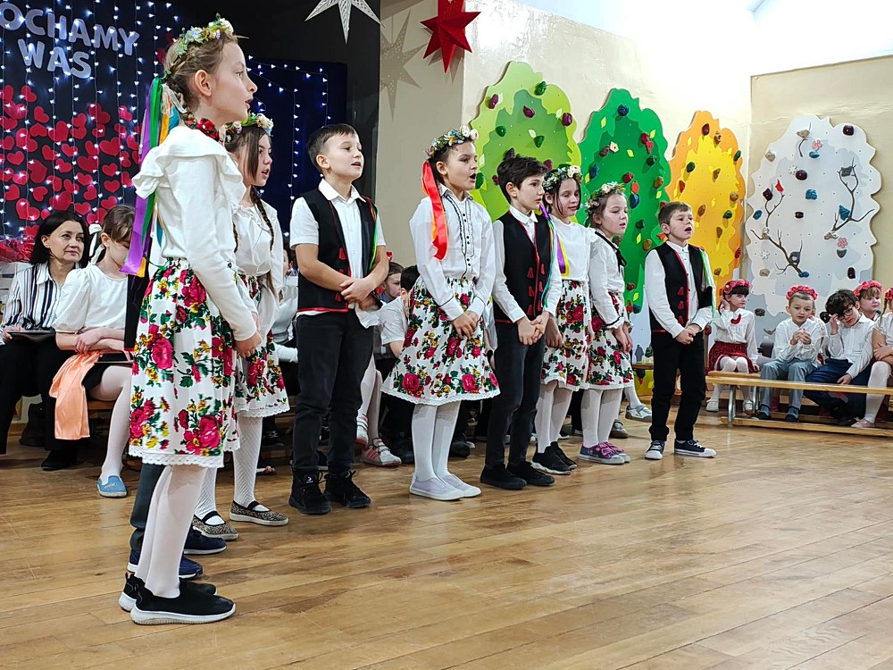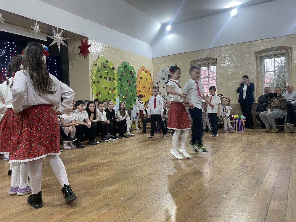 Każda z klas miała przygotowaną piosenkę oraz taniec. W programie artystycznym pojawiły się układy taneczne znanych tańców: krakowiaka, polki, zorby, a także trojaka. Kulminacyjnym punktem programu było wręczenie własnoręcznie wykonanych upominków - laurek. Spotkanie zakończyło pamiątkowymi zdjęciami oraz wzruszającymi uściskami.