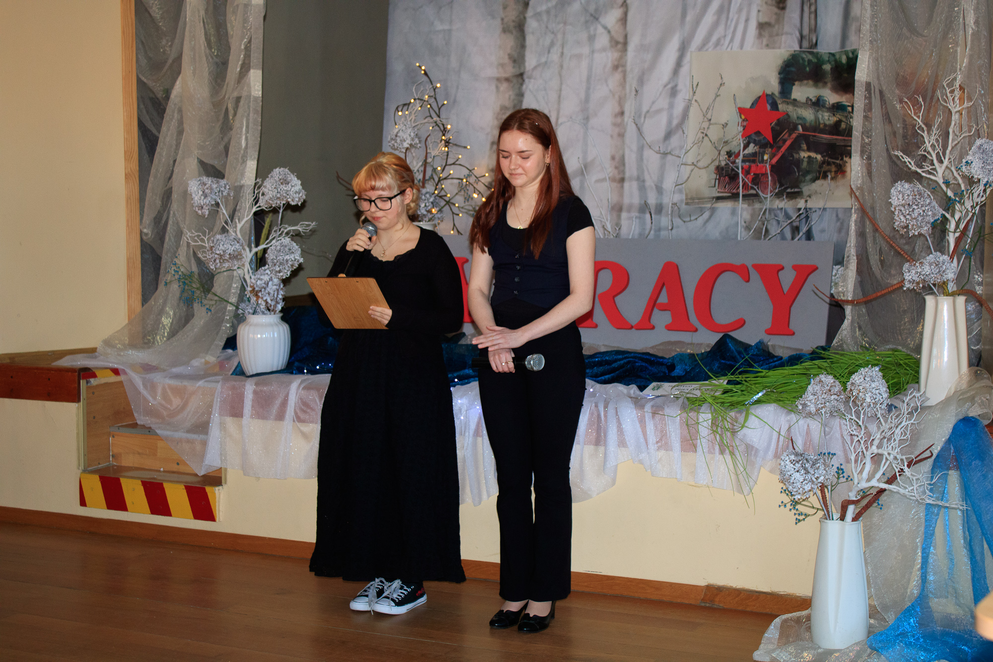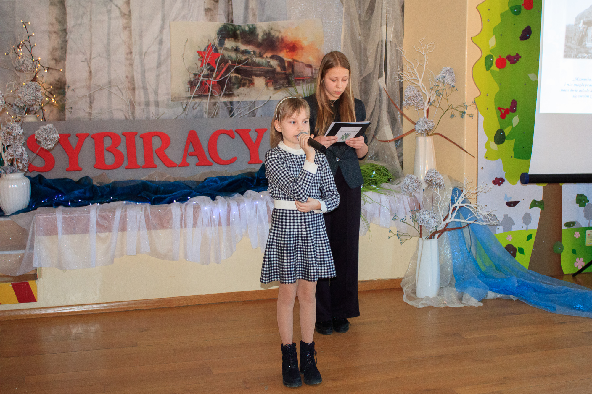 Uczestnicy ze wzruszeniem wysłuchali historii praprababci Magdy – Leonii Łopaty, która wraz z trojgiem dzieci zesłana została w rejon Semipałatyńska. Wysłuchali wspomnień czytanych przez ósmoklasistki – Aleksandrę Hućko i Zuzannę Gesing-Miśkiewicz oraz recytacji wiersza i piosenki w wykonaniu Zuzanny Rychel z kl. 5a. Nad całością uroczystości pracowała nauczycielka historii – Małgorzata Januś.
