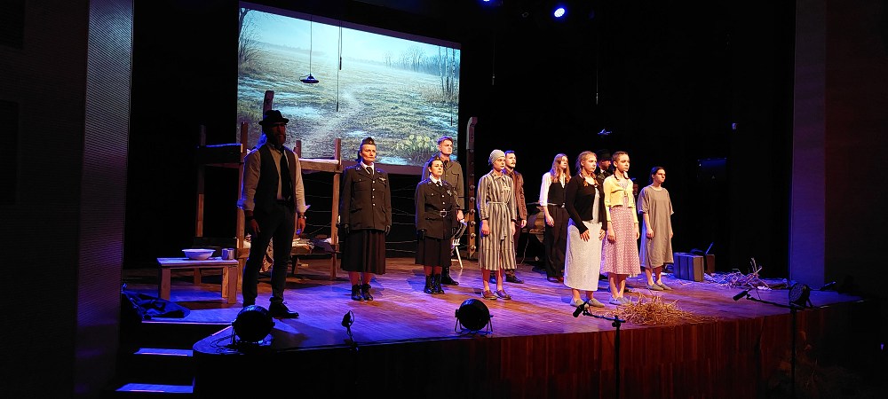Dnia 27.03.2026 r. ósmoklasiści wraz z wychowawczynią zostali zaproszeni na przedstawienie pt. „Praca, cierpienie i tęskne marzenie” przygotowane przez zespół Grupy Teatralnej Strzegomskiego Centrum Kultury, którego reżyserzy odtworzyli brutalną obozową rzeczywistość FAL Graben funkcjonującego podczas II wojny światowej na terenie Strzegomia.