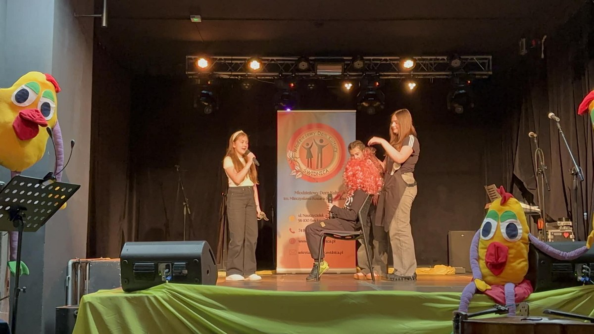Zespół z klasy 4a pod nazwą „Poszukiwacze humoru” w składzie: Layla Jarzmik, Krystian Maicki i Karol Pieszko zaprezentowali publiczności kabaretowe wykonanie znanej piosenki pt. „Prząśniczka” do muzyki Stanisława Moniuszki. Młodszej grupie niestety nie udało się zdobyć żadnej nagrody, ale swoim wykonaniem zwrócili uwagę szanownego jury oraz zdobyli gromkie brawa publiczności.