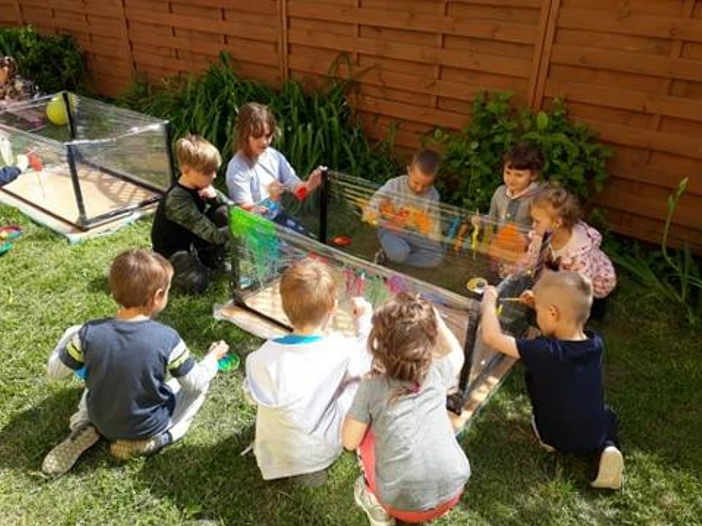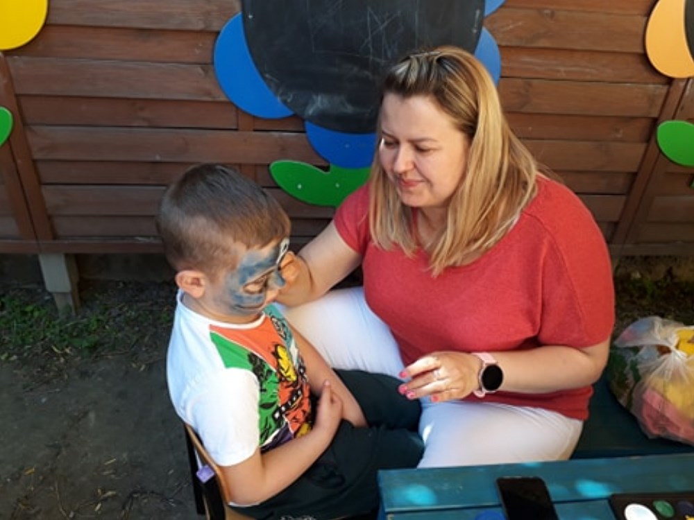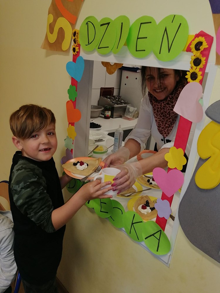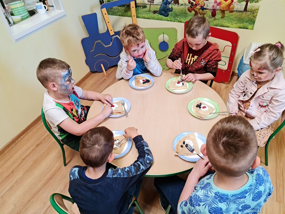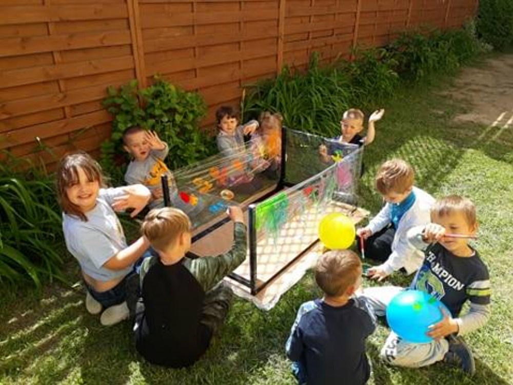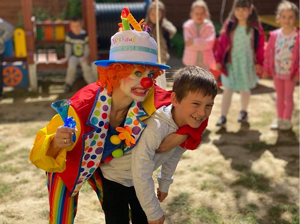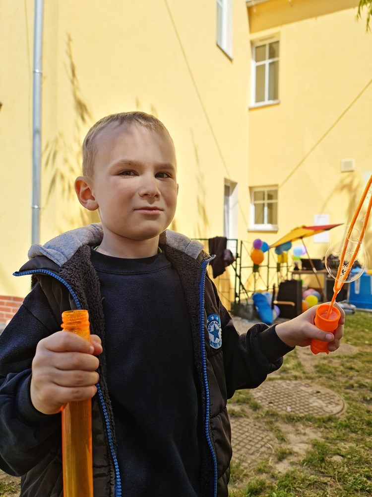 Najpierw do przedszkola zawitał niespodziewany gość - Klaun Bobik, który przygotował ciekawe zabawy i tańce dla dzieci. Potem przedszkolaki malowały na folii i puszczały bańki. Nie zabrakło również jednej z ulubionych atrakcji dzieci czyli malowania twarzy w ciekawe wzory.