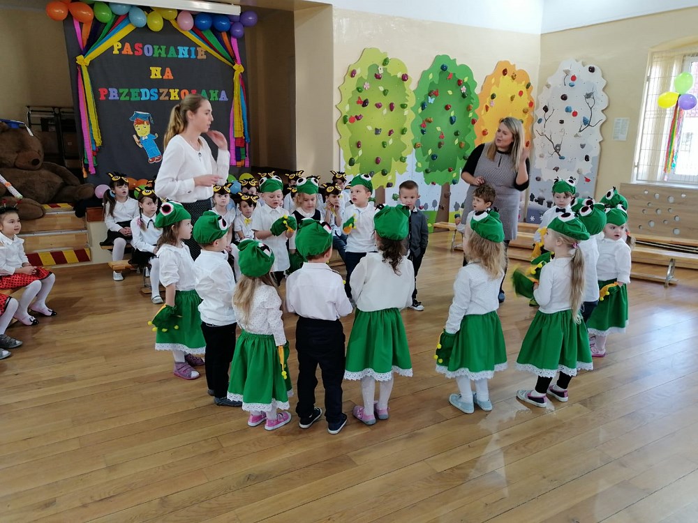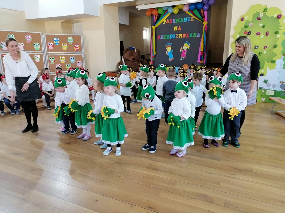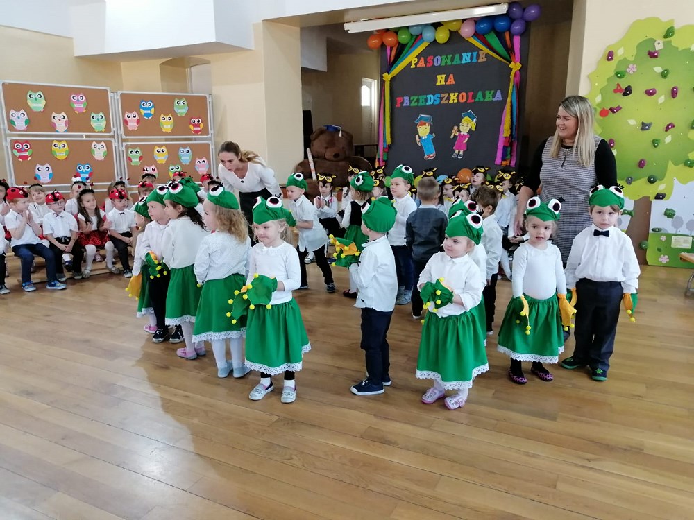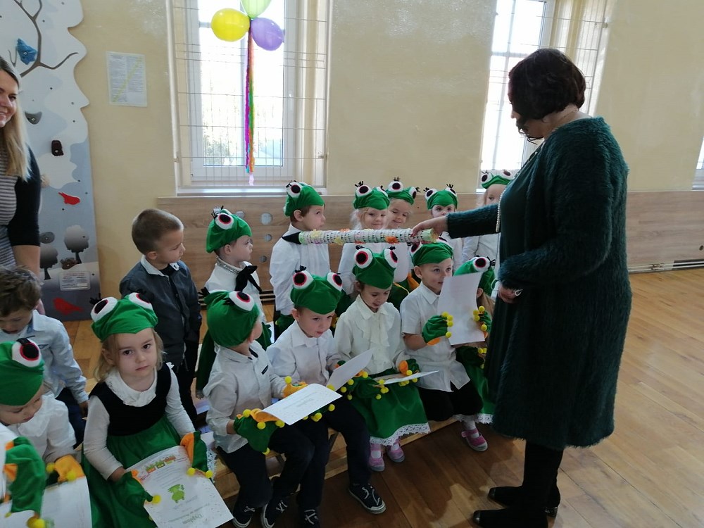 Od samego rana trwały przygotowania, ostatnie próby oraz poprawki strojów. Uroczystość rozpoczęły „Żabki” - nasze najmłodsze przedszkolaki - które zaprezentowały wierszyk pt. „Żabka” oraz piękną piosenkę pt. „Jesienna wyliczanka”.