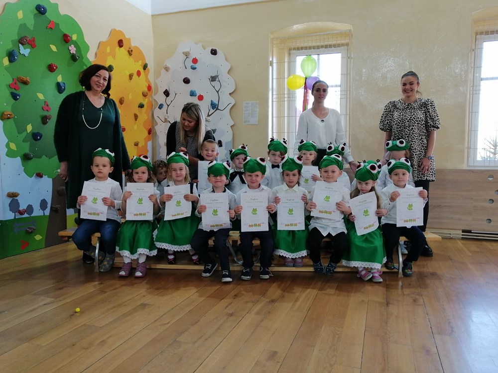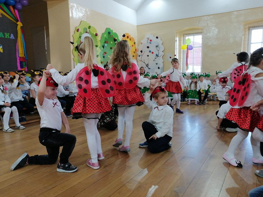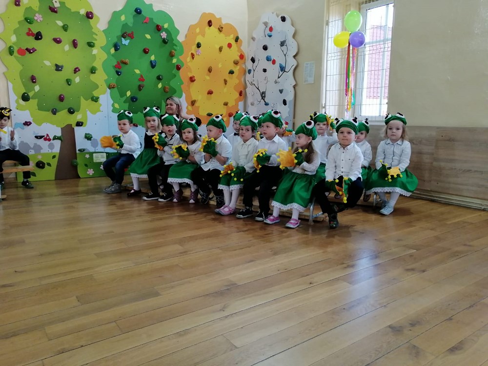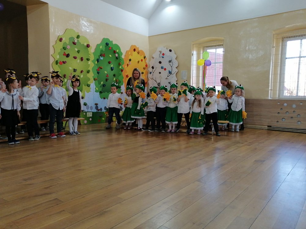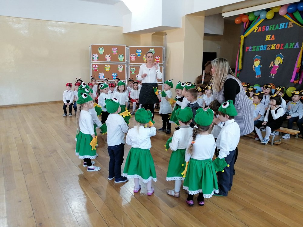 Od samego rana trwały przygotowania, ostatnie próby oraz poprawki strojów. Uroczystość rozpoczęły „Żabki” - nasze najmłodsze przedszkolaki - które zaprezentowały wierszyk pt. „Żabka” oraz piękną piosenkę pt. „Jesienna wyliczanka”.