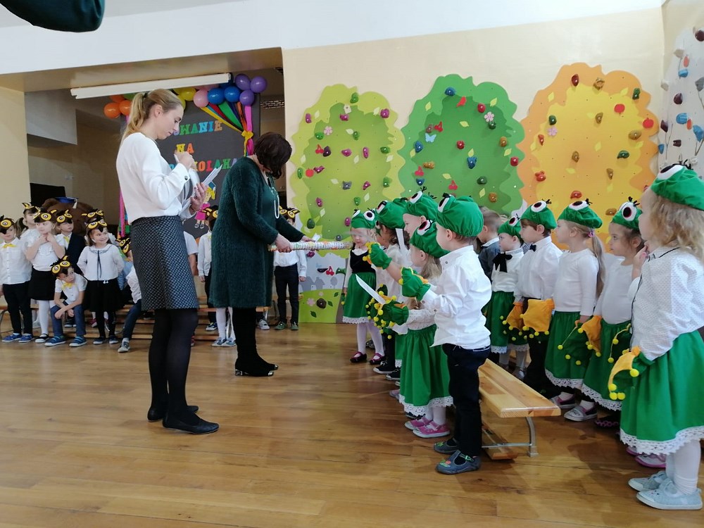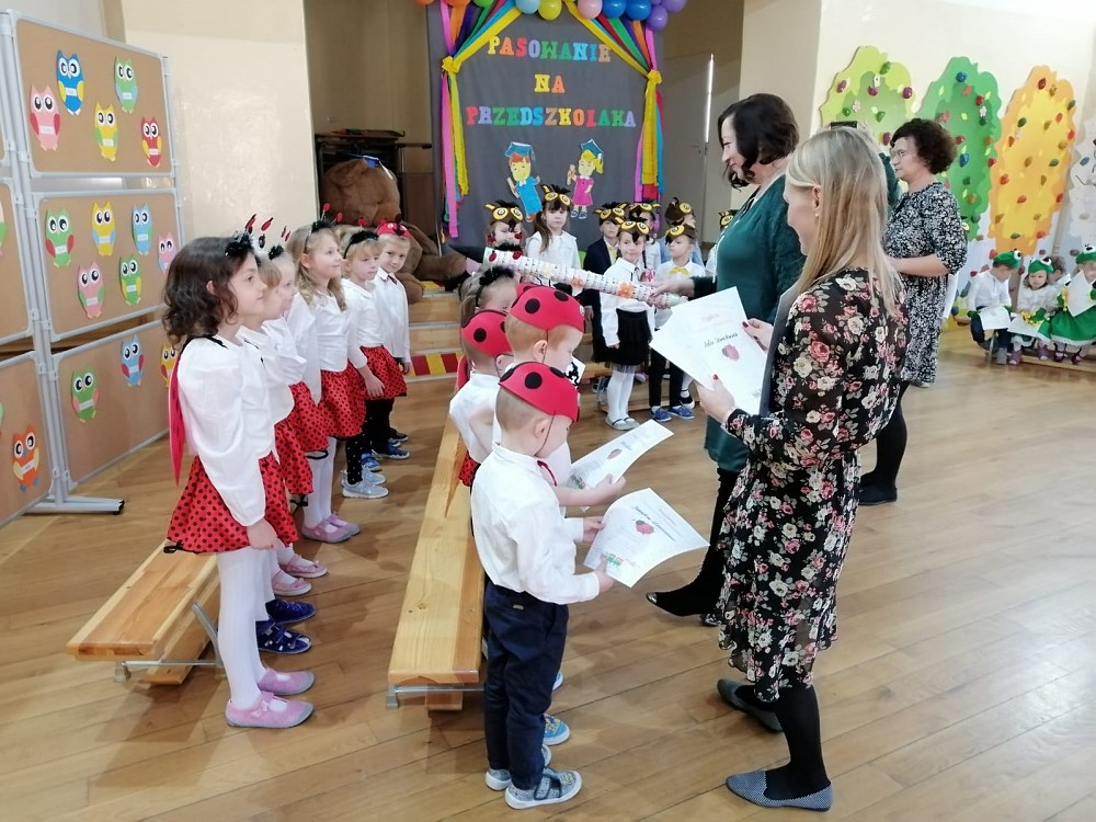 Po części artystycznej, Pani dyrektor Beata Jankiewicz dokonała uroczystego pasowania przedszkolaków, a wychowawczynie rozdały im piękne dyplomy na pamiątkę tego wspaniałego dnia.