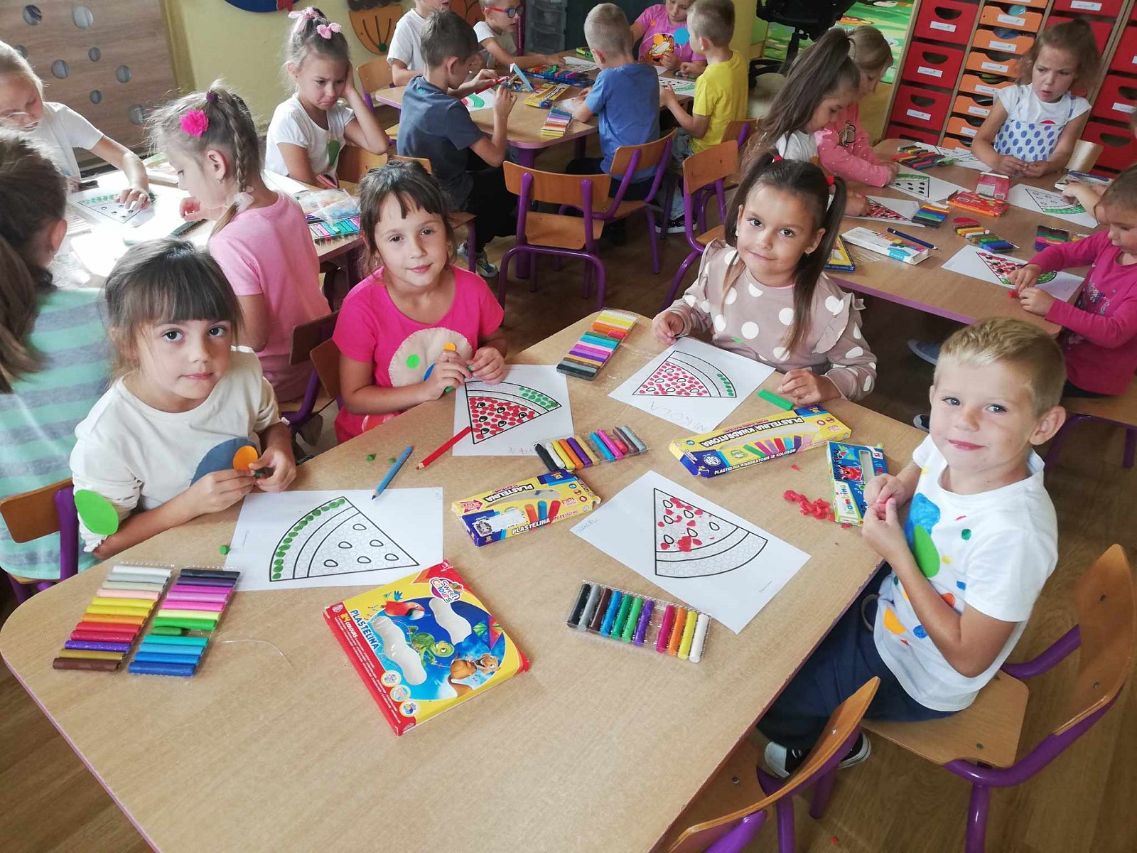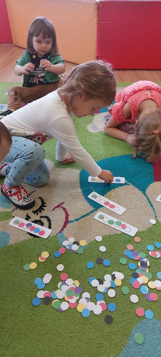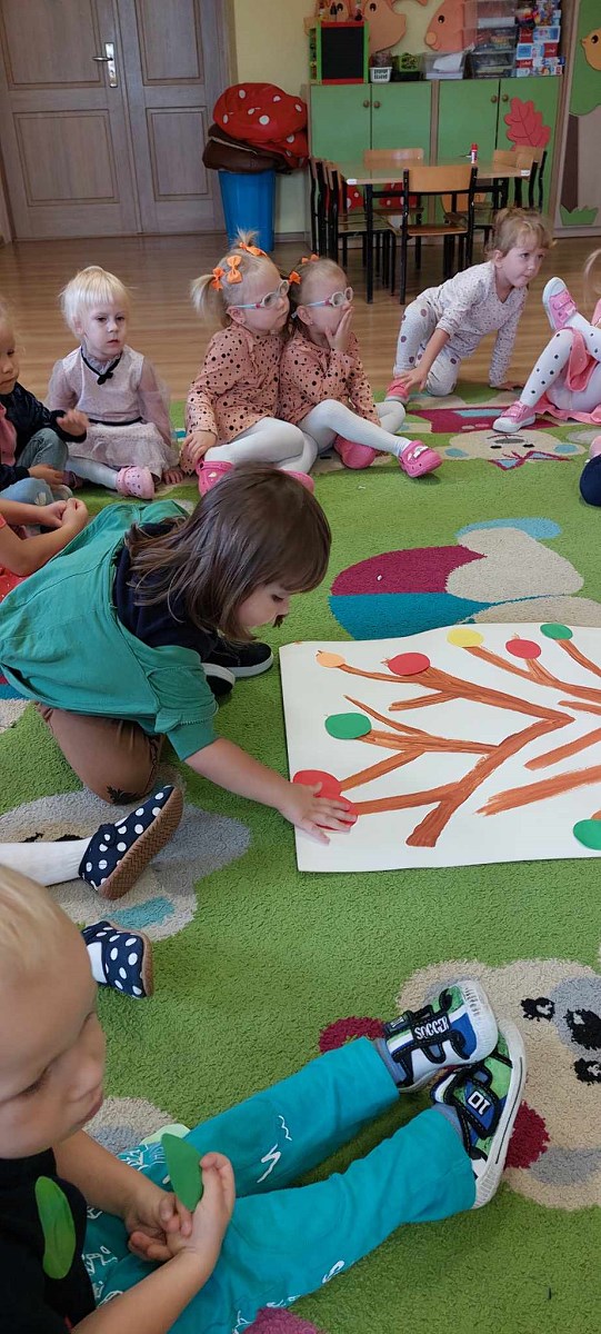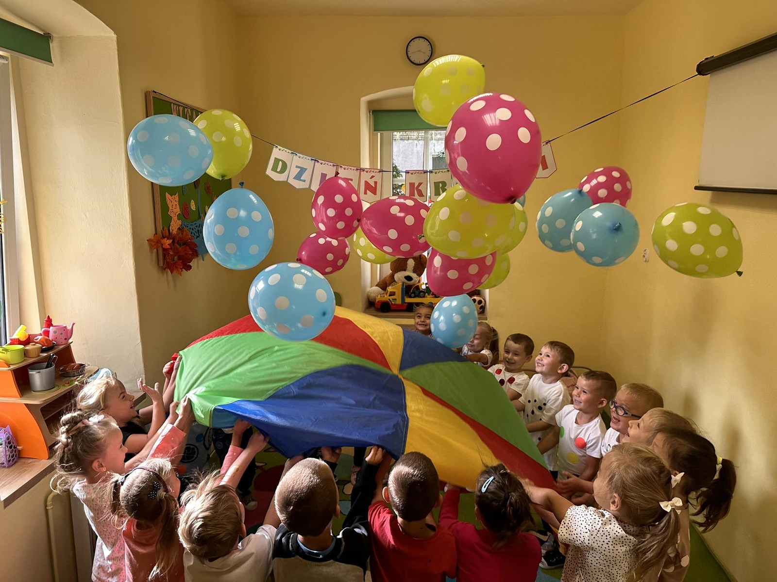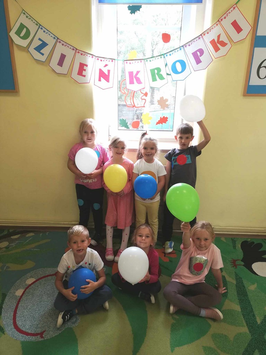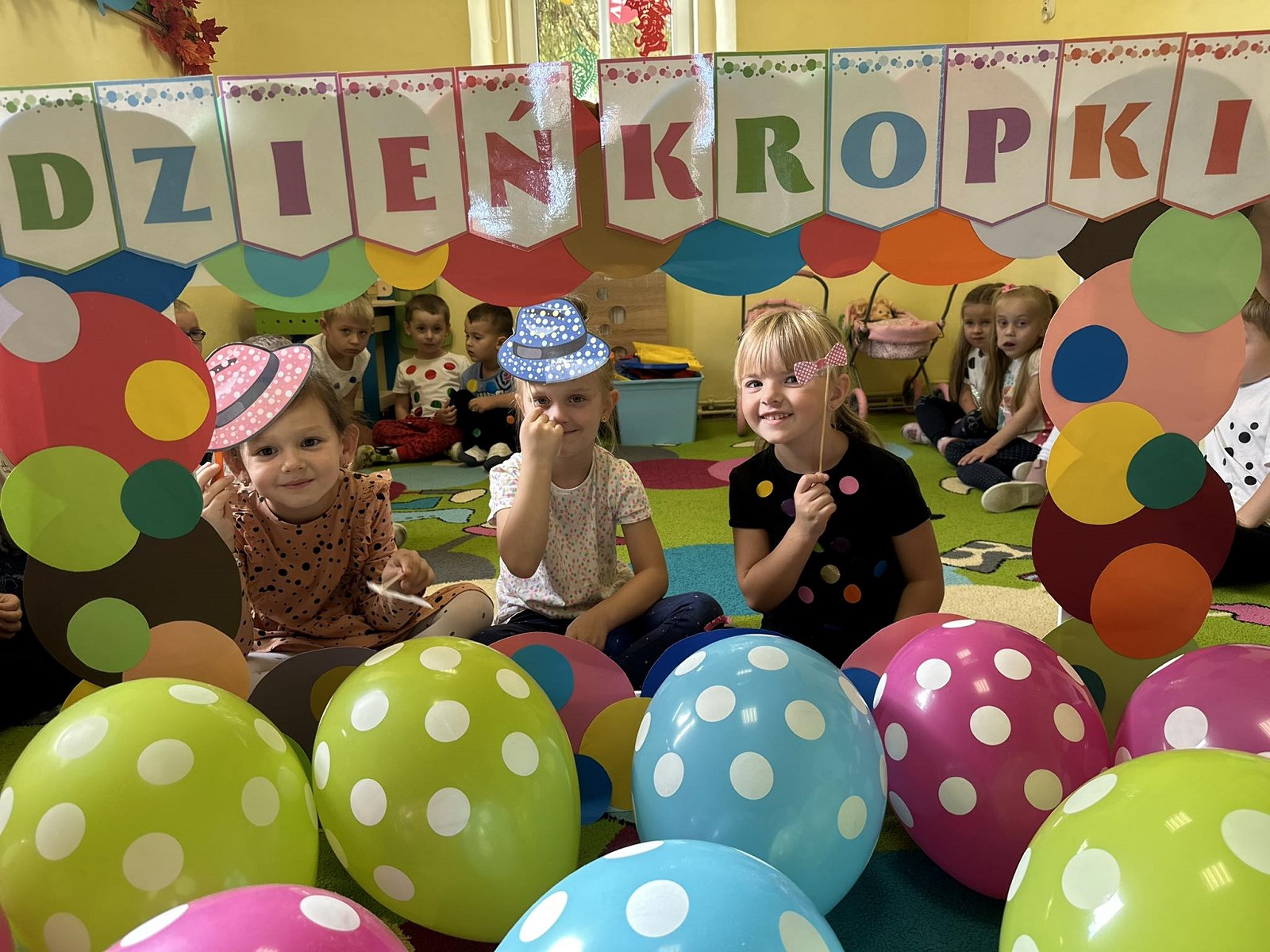 Dzieci z zainteresowaniem poznały inspirującą historię Vashti. Przedszkolaki ubrane w kolorowe kropki spędziły dzień na wspaniałej zabawie. Nie zabrakło kropkowej ścieżki zadań, łączenia kół o różnej wielkości i kolorze w pary, zabaw z chustą animacyjną. Dzieci wykonały prace plastyczne, których tematem przewodnim była kropka. Na zakończenie wszystkich zabaw dzieci zostały zaproszone do „małej” sesji zdjęciowej z ramką w kropki.