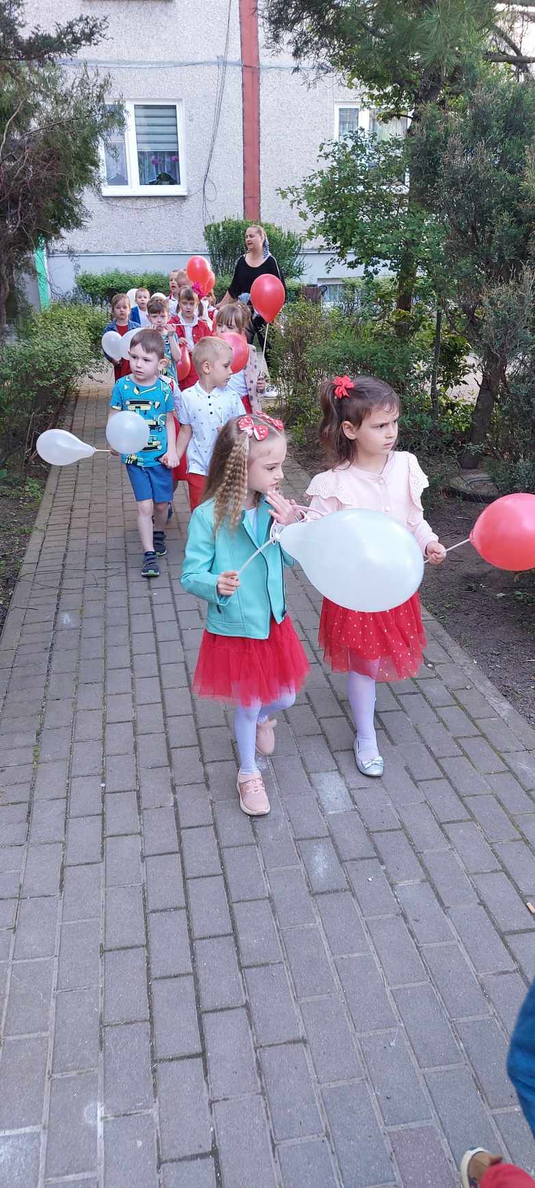 W tym dniu przedszkolaki przyszły ubrane w kolory polskich barw narodowych. Dzieci zaśpiewały piosenkę o naszej ojczyźnie, rozmawiały o symbolach oraz barwach narodowych, wykonały prace plastyczne. Następnie udały się na przemarsz po Jaroszowie z biało- czerwonymi balonami.
