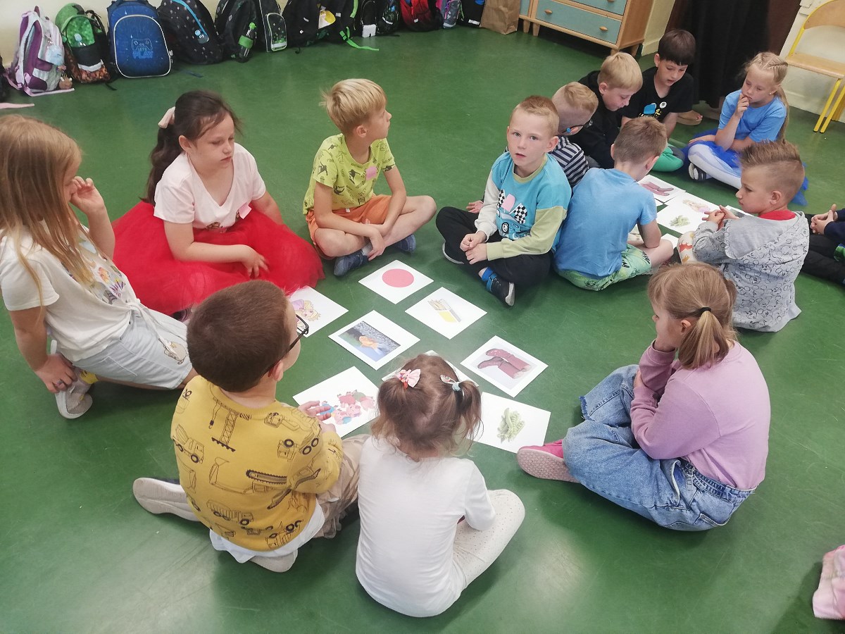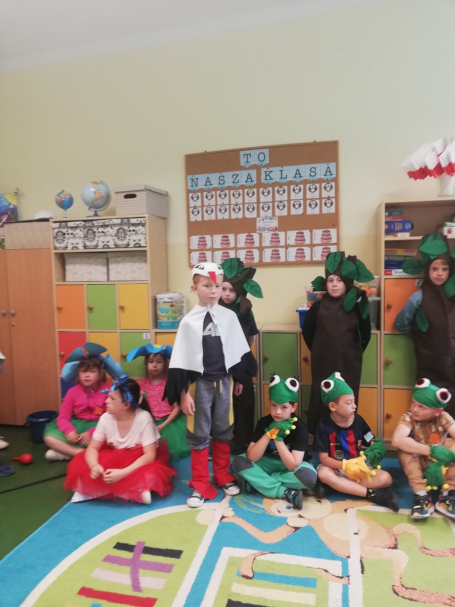 Tematem przewodnim był „Magiczny świat bajek”. Na początku spotkania dzieci zostały podzielone na małe grupy, aby mogły lepiej się poznać i zintegrować. Dzieci wspólnie rozwiązywały zagadki dotyczące znanych im bajek, układały puzzle, ćwiczyły umiejętność współpracy. Na zakończenie spotkania uczniowie klasy I przygotowali dla swoich młodszych kolegów i koleżanek teatrzyk pt. „Żuraw i czapla”. Spektakl opowiadał o perypetiach tytułowych bohaterów i ich skomplikowanej relacji. Przedszkolaki z wielkim zainteresowaniem śledziły akcje, a na ich twarzach malowały się uśmiech i zdziwienie. Kreacje i umiejętności aktorskie uczniów zachwyciły widownię w sali. „Dzień otwarty” zakończył się rozdaniem przedszkolakom przez pierwszoklasistów odznak „Znawcy bajek”.