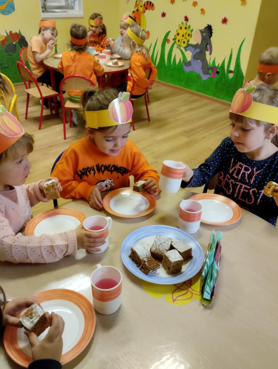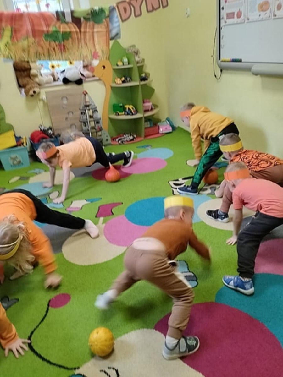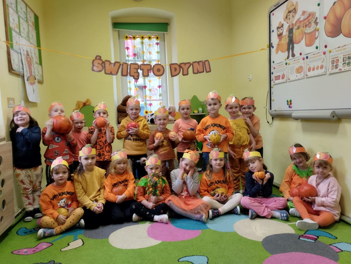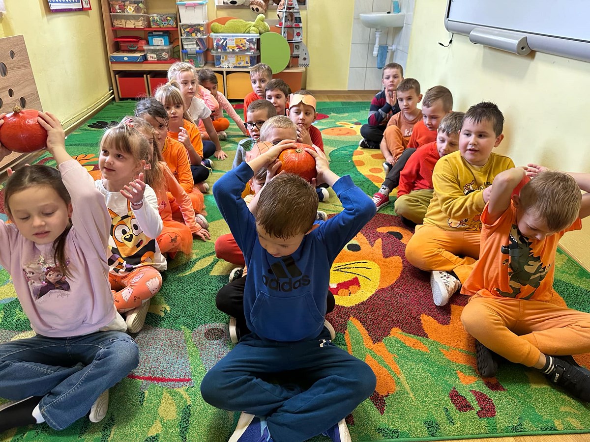 Przedszkolaki wzięły udział w licznych zabawach, tj.: slalom dyniowy, dyniowe zawody, skoki przez dynię, zabawy matematyczne oraz plastyczne. Odbyła się również degustacja zupy dyniowej, ciasta dyniowego i próbowano pestki z dyni. Ten dzień był pełen wrażeń i radości.