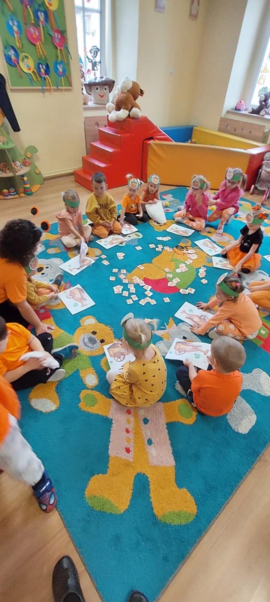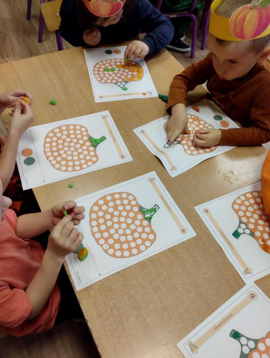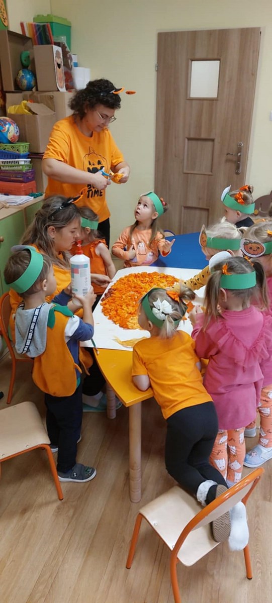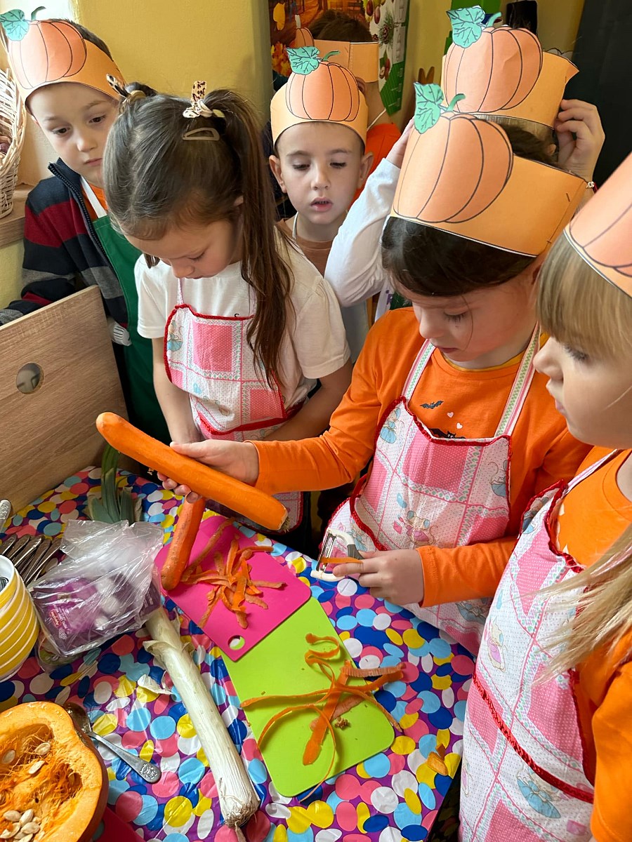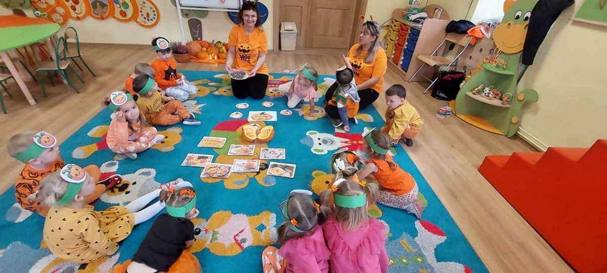 Przedszkolaki wzięły udział w licznych zabawach, tj.: slalom dyniowy, dyniowe zawody, skoki przez dynię, zabawy matematyczne oraz plastyczne. Odbyła się również degustacja zupy dyniowej, ciasta dyniowego i próbowano pestki z dyni. Ten dzień był pełen wrażeń i radości.