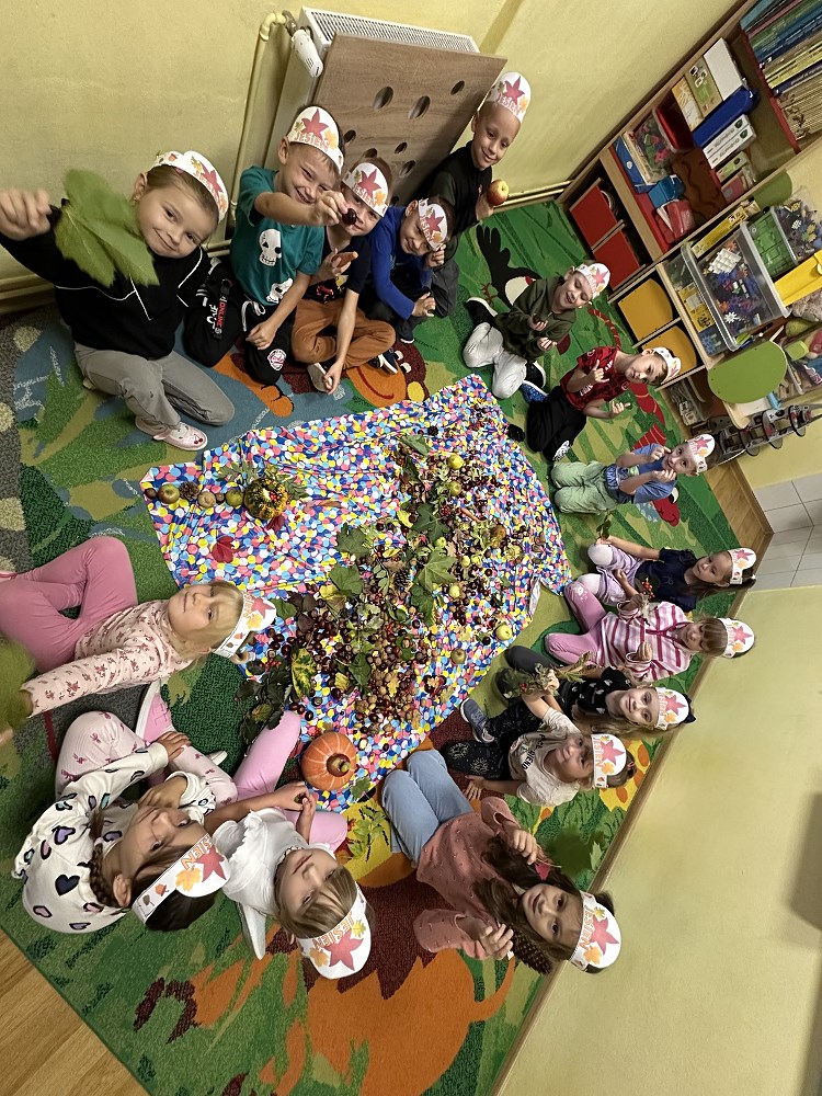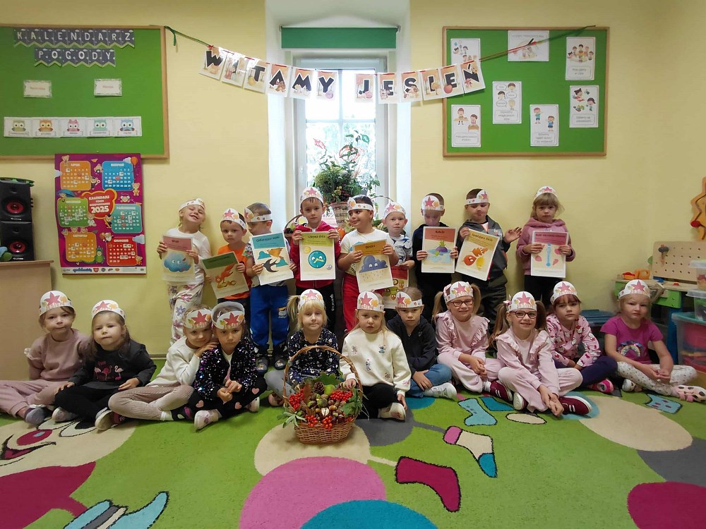 Dnia 23 września 2025 r. jaroszowskie przedszkolaki z radością powitały Panią Jesień. Tego dnia w przedszkolu panowała wyjątkowa atmosfera pełna barw.