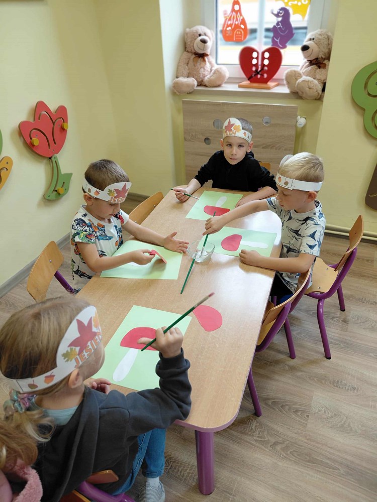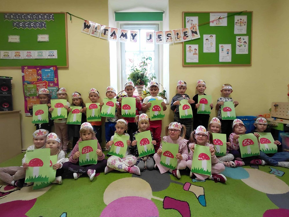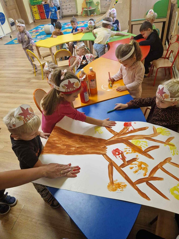 Po powrocie dzieci wyklejały grzybki z różnych materiałów plastycznych, tworzyli drzewa z wykorzystaniem eksperymentów oraz malowali drzewa farbami. To był dzień pełen wrażeń, nauki przez zabawę i wspólnego odkrywania piękna przyrody.