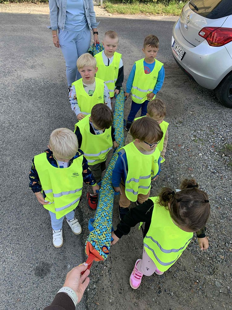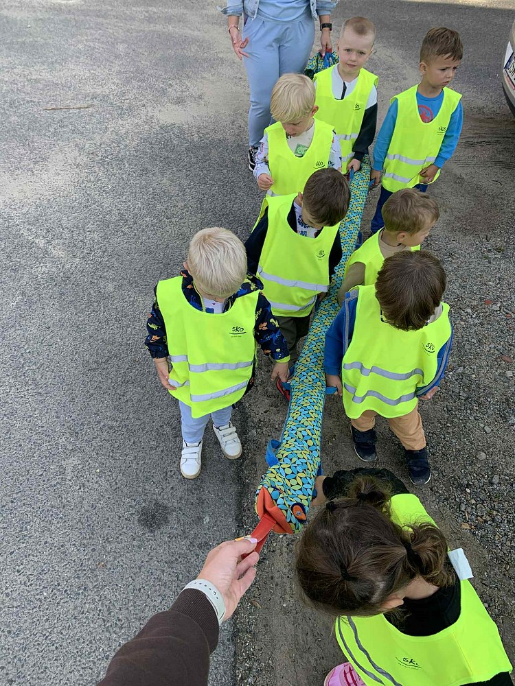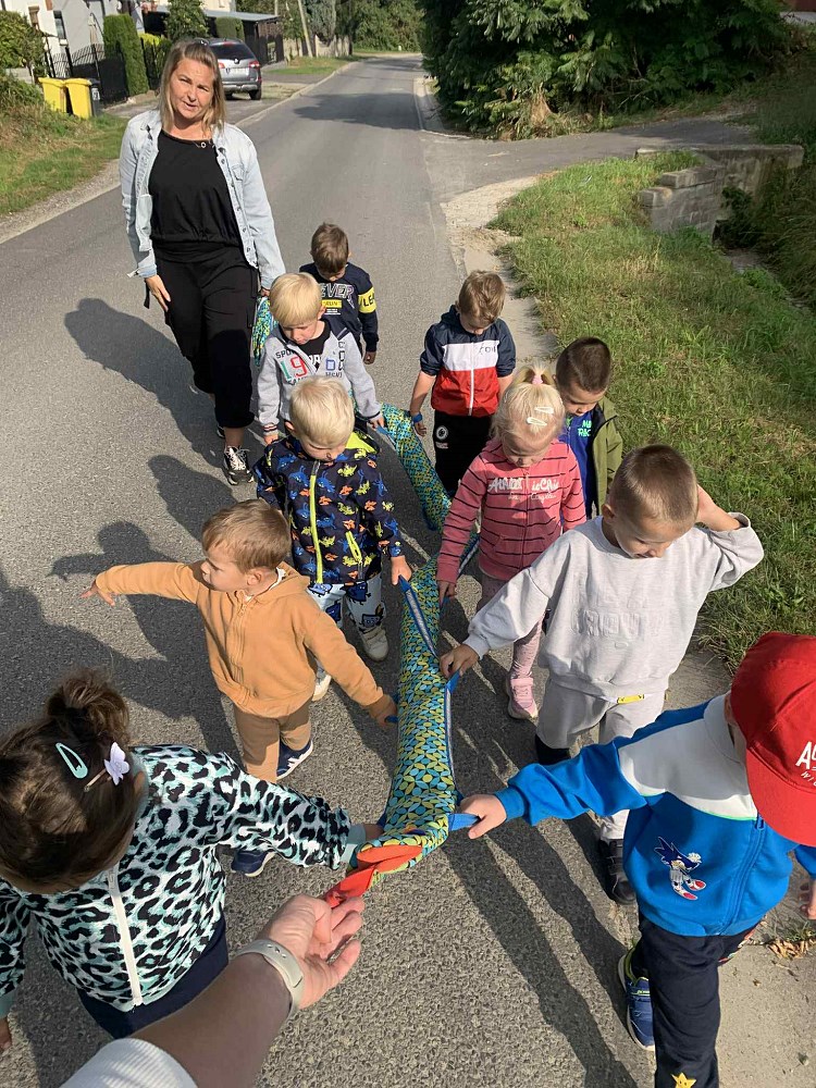 Ubrane wygodnie i odpowiednio do pogody, z uśmiechem na twarzy odkrywały uroki okolicy - obserwowały przyrodę, szumiące drzewa, barwne liście i śpiew ptaków. Spacer był nie tylko doskonałą okazją do ruchu i relaksu, ale także sposobem na rozwijanie spostrzegawczości oraz rozmowy o tym, jak ważne jest przebywanie na świeżym powietrzu. To był dzień pełen radości, wspólnej zabawy i nauki przez doświadczenie świata wokół nas.