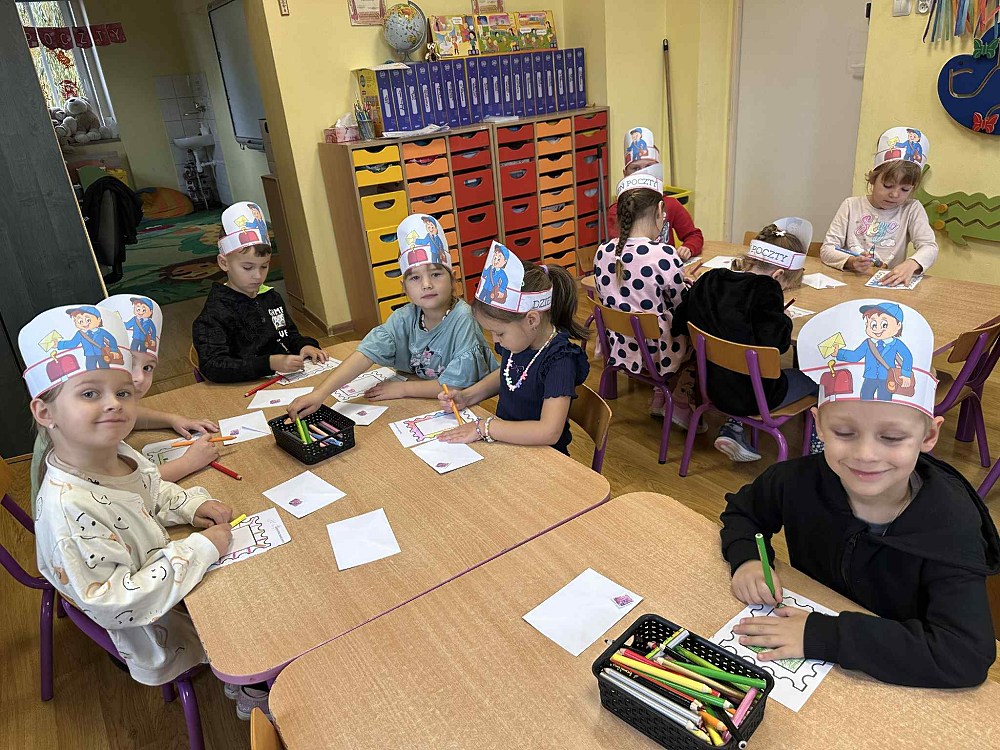 Z tej okazji przedszkolaki uczestniczyły w zajęciach, które przybliżyły im pracę poczty i listonosza. Dzieci zapoznały się z atrybutami listonosza. Przedszkolaki słuchały piosenek i wierszy o listonoszu, kodowały drogę listonosza do listów. Najwięcej emocji jednak wzbudziło u dzieci tworzenie kartki pocztowej oraz projektowanie własnych znaczków. Warto pamiętać, że takie zawody jeszcze istnieją, pomimo nowoczesnego świata. I może warto czasem napisać krótki list lub przesłać kartkę na święta.