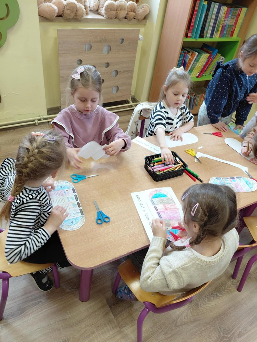 Kolejnym ważnym elementem zajęć była rozmowa na temat dbania o czystość wody. Dzieci uczyły się, jak ważne jest, aby nie zanieczyszczać rzek, jezior i mórz oraz jak codzienne działania mogą wpływać na stan środowiska. Omówiliśmy również sposoby oszczędzania wody, takie jak zakręcanie kranu podczas mycia zębów czy korzystanie z wody w sposób odpowiedzialny.