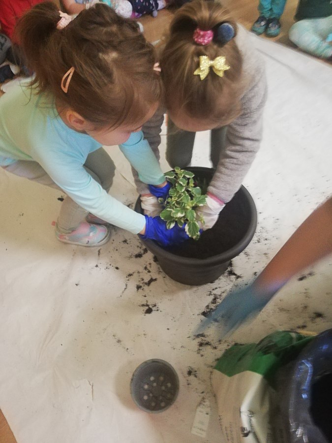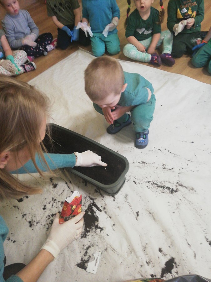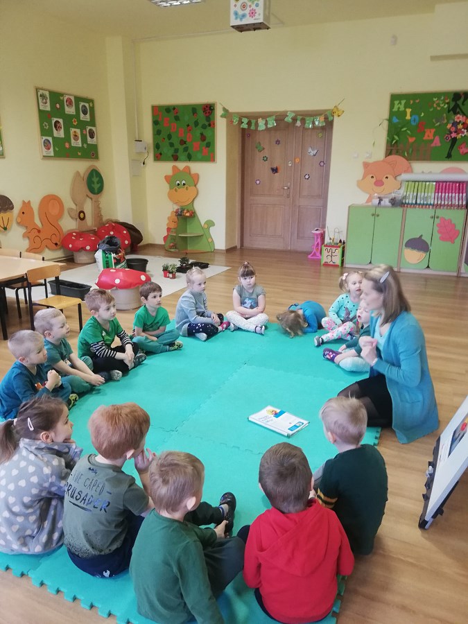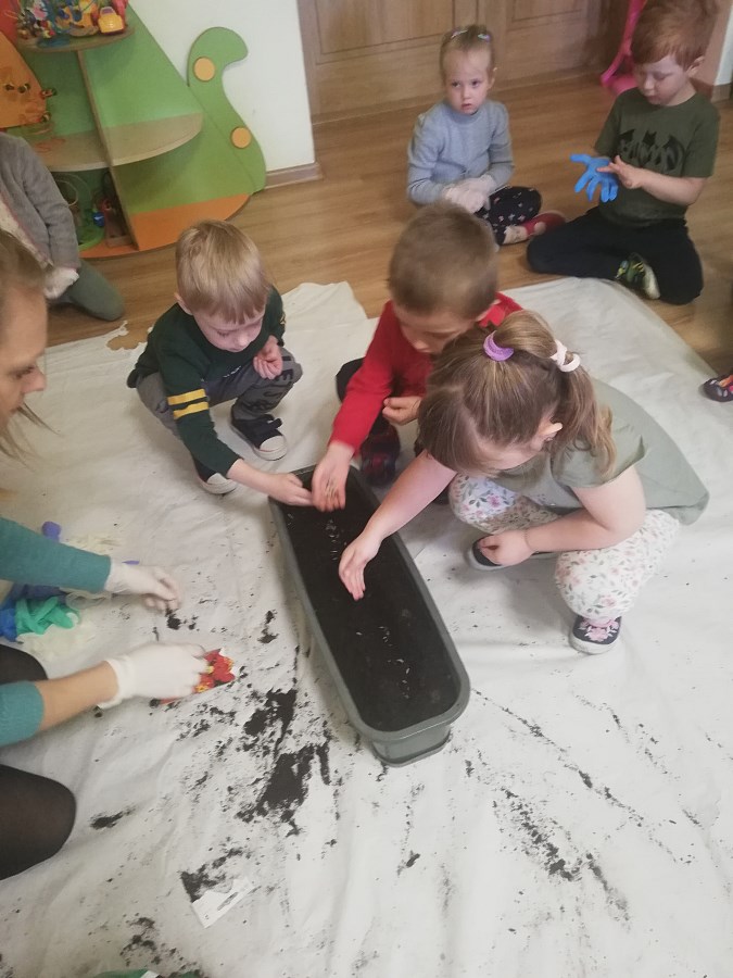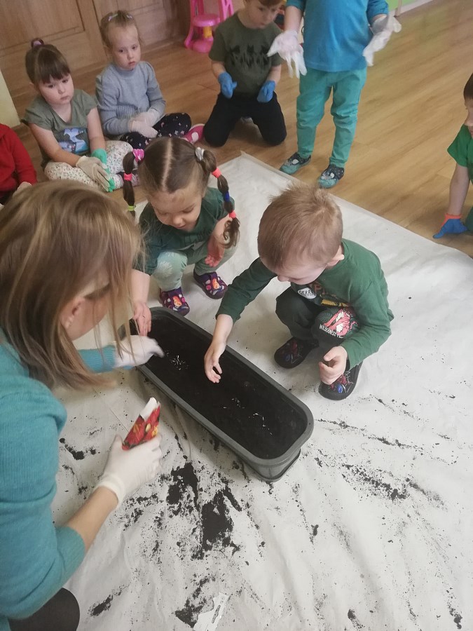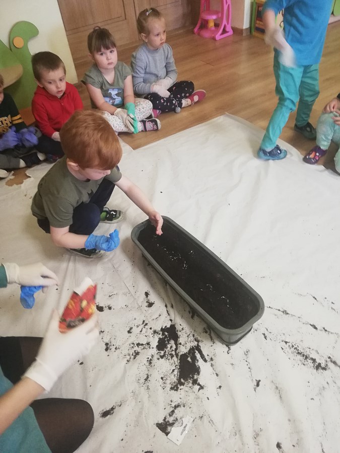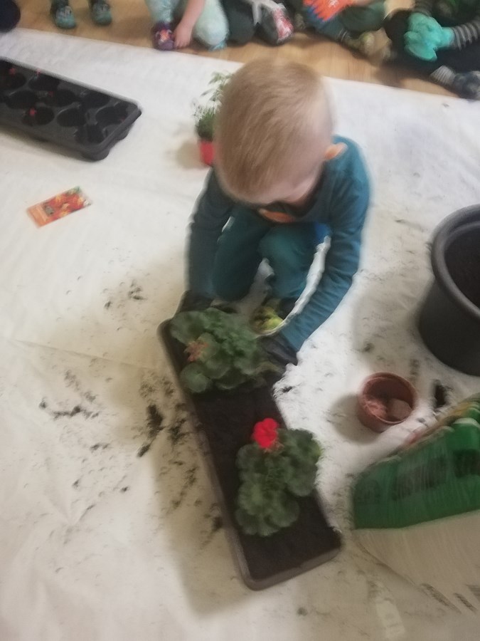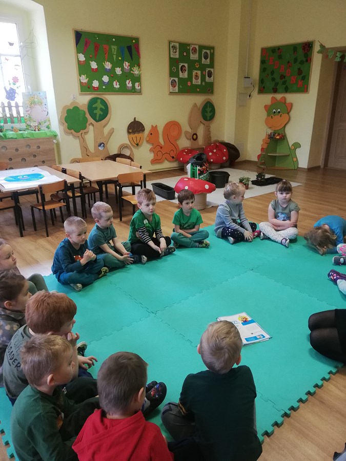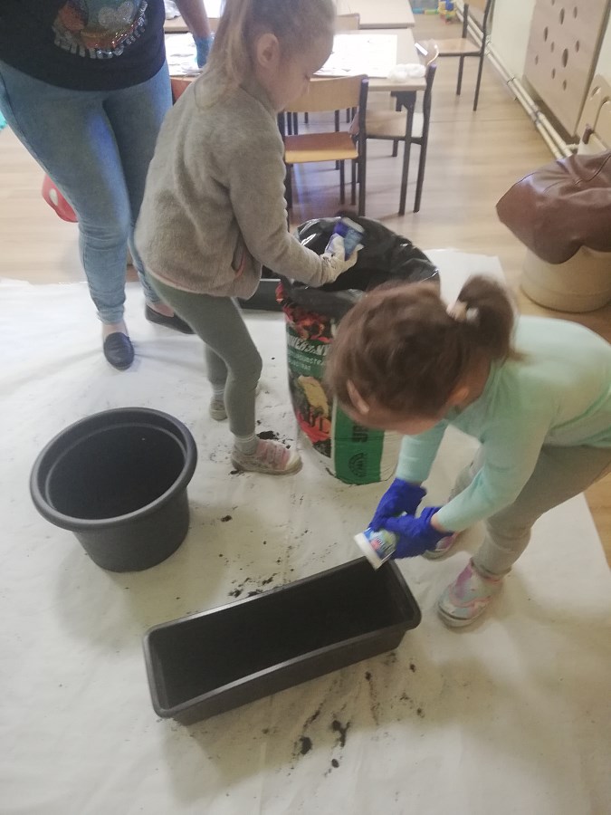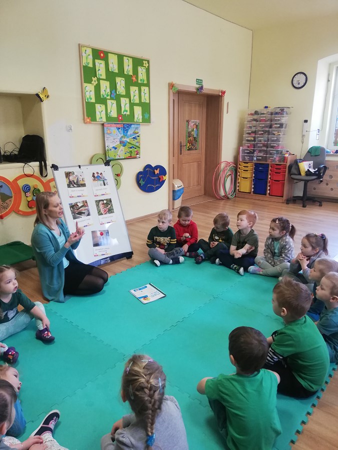Przedszkolaki rozmawiały o zasadach segregacji odpadów. W całym przedszkolu, tak jak i w grupie najmłodszych dzieci, dominował kolor zielony. „Biedroneczki” wspólnie z wychowawczynią siały oraz sadziły kwiaty. Na koniec dnia, został wykonany wspólny plakat, który wisi dumnie w naszym przedszkolu.
