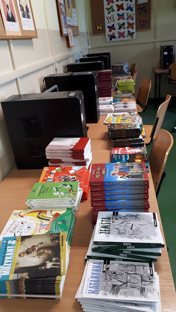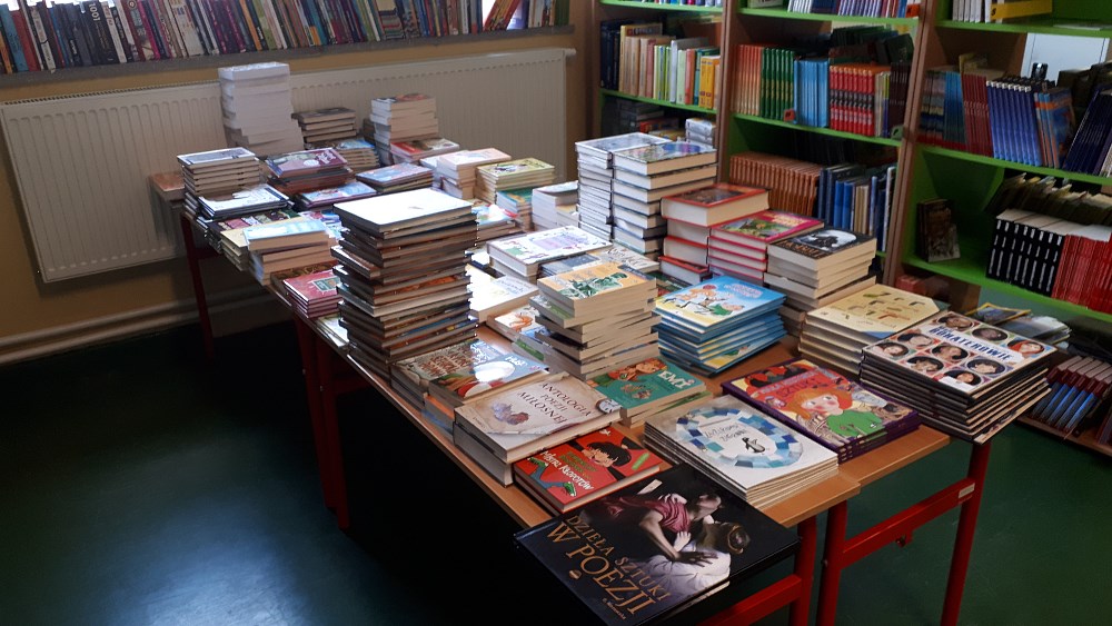 To prawie 1000 książek wybranych przez bibliotekarkę Monikę Bytnar – Gołembiowską z listy najbardziej popularnych książek wyróżnionych w rankingach czytelniczych i promowanych, m.in. przez fundację „ABCXXI – Cała Polska czyta dzieciom”. Dokupiono także lektury oraz książki w języku angielskim, ponieważ od kilku lat uczniowie realizują w ramach lekcji języka angielskiego projekt „Read on”.