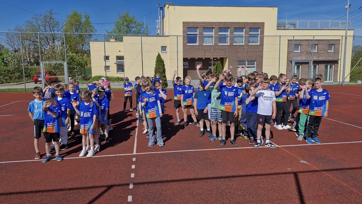We wtorek - 29 kwietnia 2025 r. - na boisku „Orlik” w Jaroszowie uczniowie z klas I – III, z gościnnym udziałem klasy IVb przystąpiły do realizacji „Niebieskich Igrzysk”.