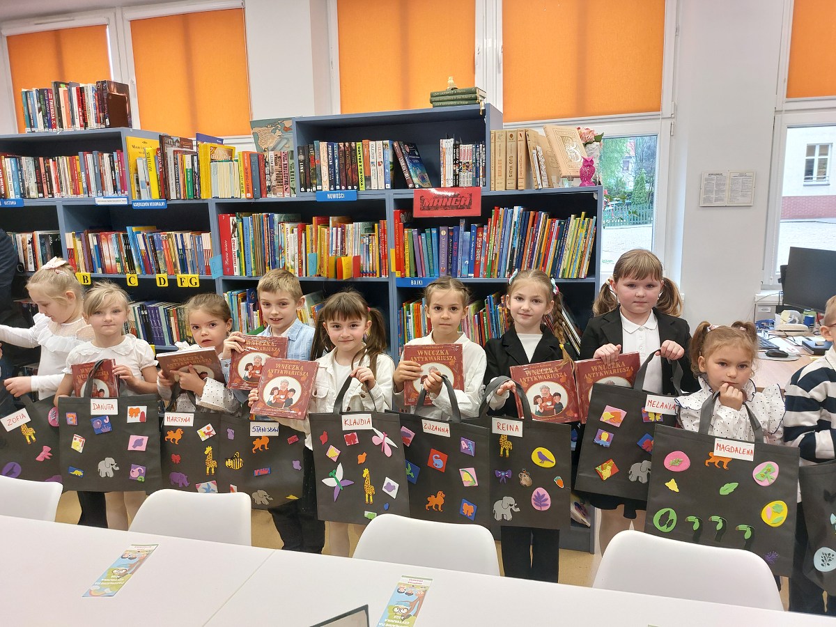 W piątek - 25 kwietnia 2025 r. - w bibliotece szkolnej Zespołu Szkolno – Przedszkolnego w Jaroszowie została zorganizowana uroczystość Pasowania Pierwszoklasistów na Czytelników.