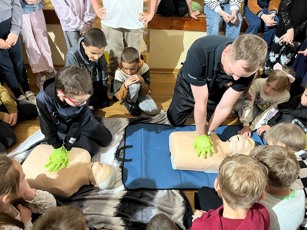 W czwartek - 24.04.2025 r. - uczniowie z klas I-III i IV-VIII Zespołu Szkolno-Przedszkolnego w Jaroszowie uczestniczyli w praktycznych warsztatach dotyczących udzielania pierwszej pomocy pt. „Zobaczcie - umiem ratować ludzkie życie!” oraz bezpiecznej ewakuacji ze szkoły w związku z bezpośrednim zagrożeniem powodzią, pożarem, wojną, atakiem terrorystycznym.