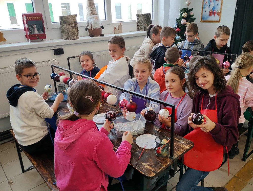 Dnia 26 listopada 2025 r. uczniowie z klasy 4b i 6a z ZSP w Jaroszowie wraz z wychowawczyniami: Katarzyną Adamską i Sylwią Wilczak w atmosferze zimowo - świątecznej zwiedzili fabrykę bombek w Złotoryi.
