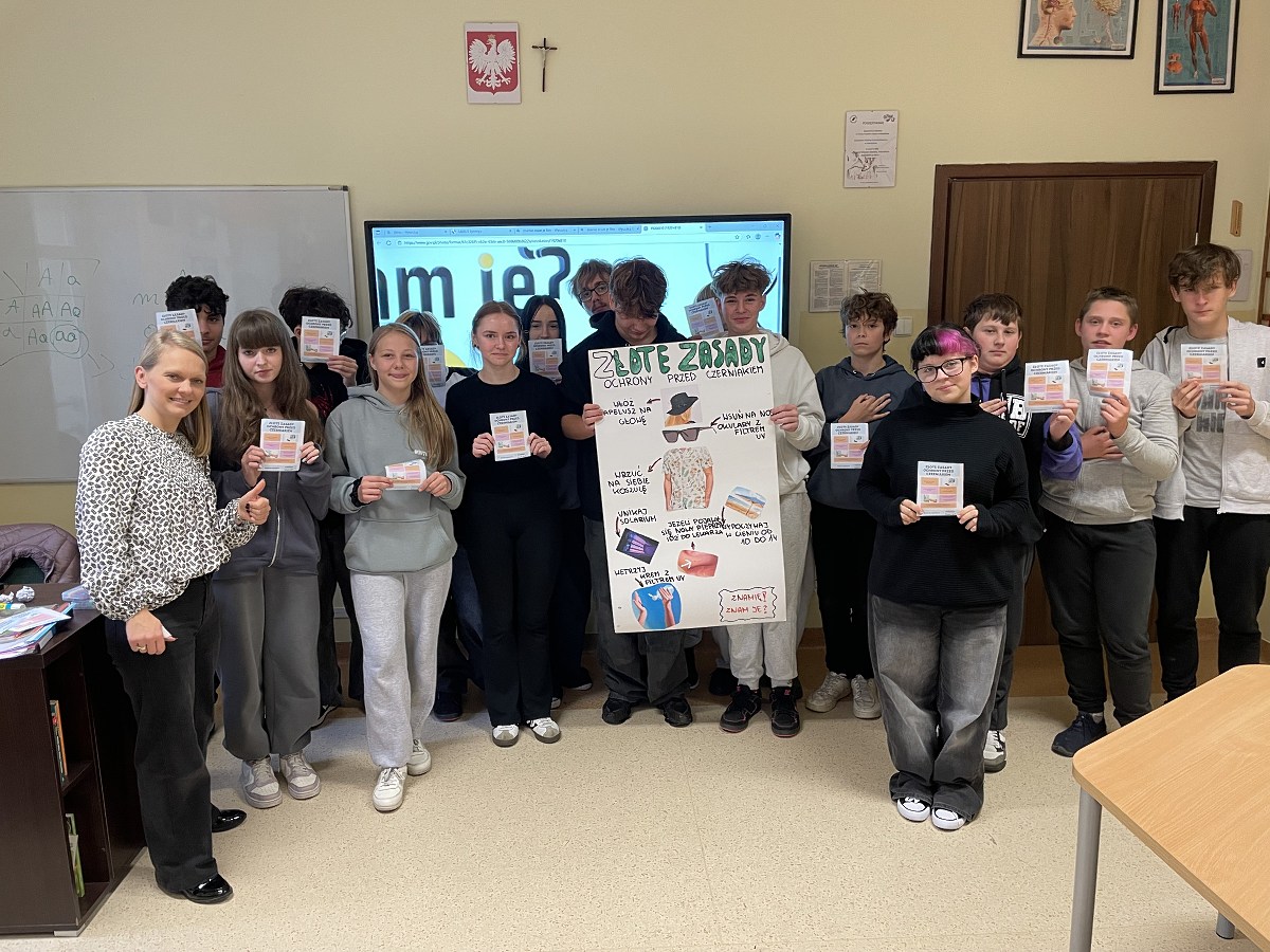 Ósmoklasiści z Zespołu Szkolno – Przedszkolnego w Jaroszowie pod kierunkiem nauczycielki biologii Klaudii Rychel wzięli udział w programie edukacyjnym „Znamię! Znam je?” realizowanym przez Państwowy Inspektorat Sanitarny w Świdnicy.