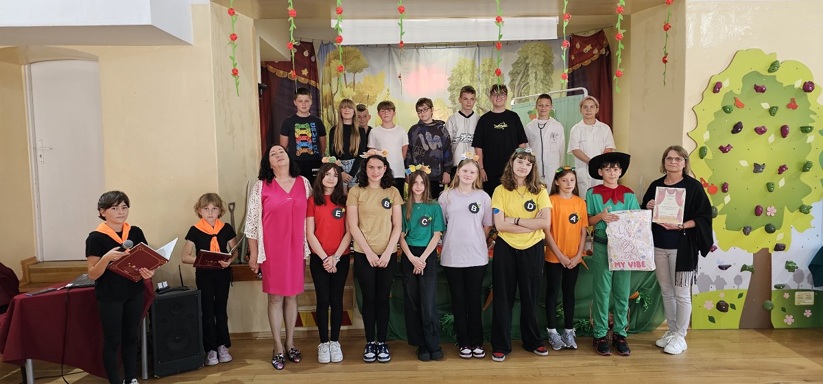 W tym dniu szkoła zamieniła się w prawdziwe królestwo teatru, gdzie młodzi aktorzy zaprezentowali swoje niezwykłe umiejętności. Zaprezentowane spektakle były dowodem na to, jak wiele potrafią dzieci. Uczniowie zaskoczyli publiczność swoim aktorstwem, kreatywnymi scenografiami i kostiumami. Każdy z występów był unikalny i wspaniały, a widzowie nagradzali młodych aktorów gromkimi brawami. Talenty aktorskie uczniów podziwiali Rodzice, dyrektor szkoły – Beata Jankiewicz, wicedyrektor szkoły – Violetta Posłuszna-Koziałkowska, nauczyciele oraz zaproszeni Goście: radny Michał Czapla, radny Tomasz Dziurla i przewodniczący Rady Rodziców Remigiusz Wołowiec. Festiwal prowadziły uczennice z kl. IVa - Zuzanna Rychel i Martyna Szymańska.