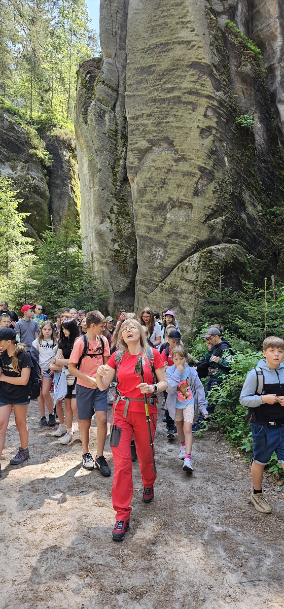 Trzeciego dnia wyjechaliśmy z Pragi do Adršpachu - malowniczego Skalnego Miasta położonego w północnych Czechach. Tam przeszliśmy z panią przewodnik trasą turystyczną przez monumentalne formacje skalne, podziwiając m. in. „Głowę cukru”, „Starostę i Starościnę”, „Wielką panoramę”, „Ząb Smoka” oraz wodospad ukryty w szczelinie skalnej.