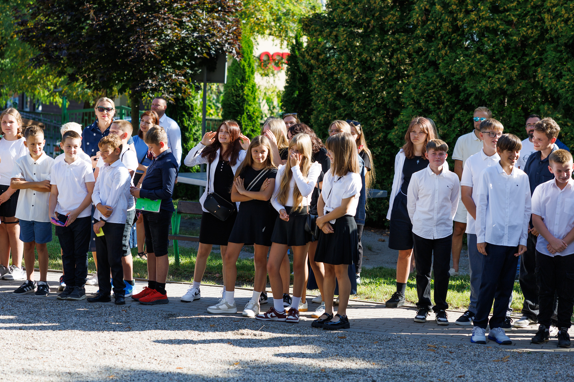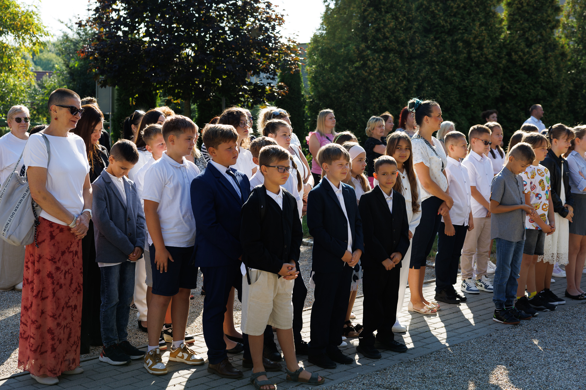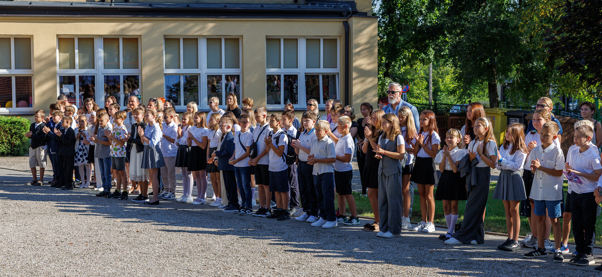 Tegoroczne rozpoczęcie roku szkolnego w Zespole Szkolno – Przedszkolnym w Jaroszowie zostało zorganizowane 1 września 2025 r. na podwórku szkolnym.