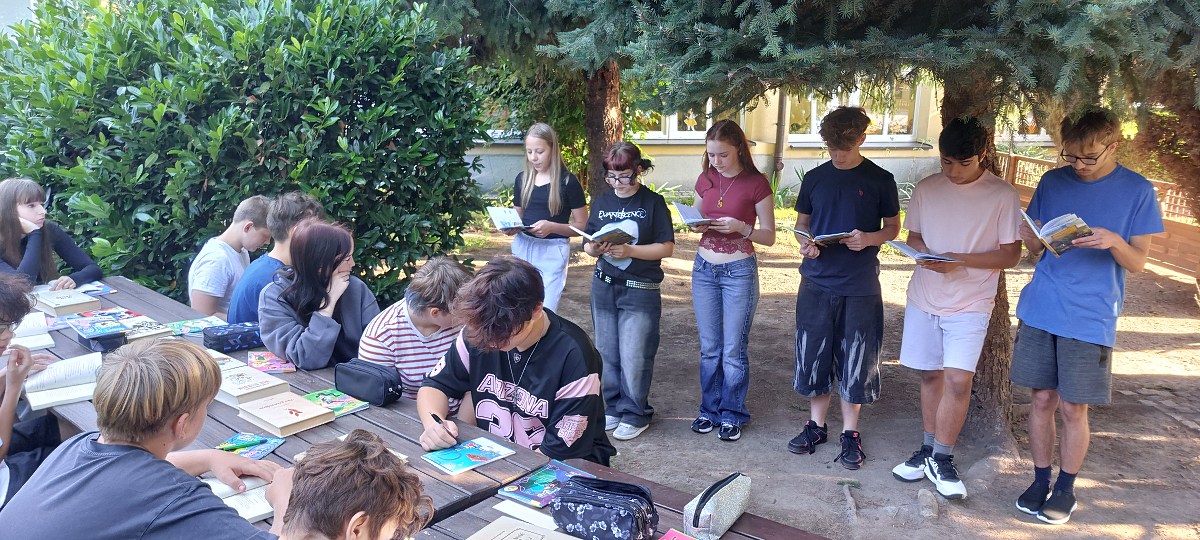 Jak co roku, uczniom towarzyszyła dyrektor szkoły – p. Beata Jankiewicz, która także zachęcała młodych ludzi do rozwijania pasji czytelniczych, do wzbogacania języka, ale także relaksowania się z książkami.
