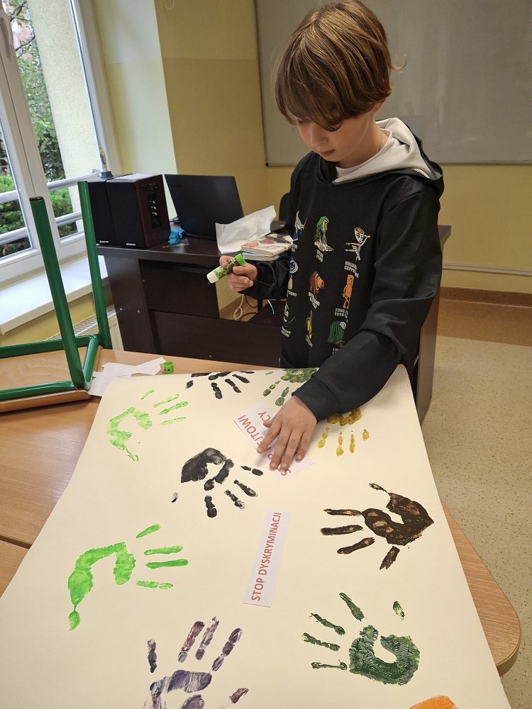 Podczas warsztatów, uczniowie wspólnie wykonywali plakaty nawołujące do szacunku, wspólnej tolerancji i akceptacji. Prace plastyczne zostały rozwieszone w korytarzach szkolnych. Uczestnicy wspólnie zastanawiali się, jak reagować, gdy są świadkami przemocy, jak wspierać innych oraz jak budować klasę opartą na szacunku i wzajemnej życzliwości.