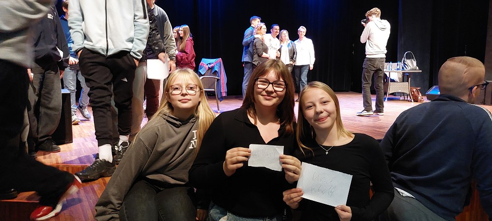 Sala widowiskowa SCK wypełniona została w całości młodzieżą ze strzegomskich i gminnych szkół. Także uczniowie z Jaroszowa z klasy 7a i 8a zostali zaproszeni na to ciekawe spotkanie.