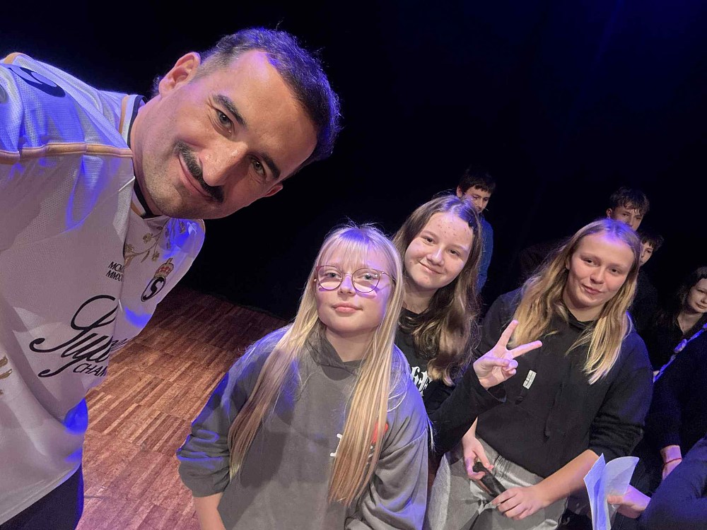 Michał Koterski podzielił się z młodzieżą poruszającą historią swojego dzieciństwa i osobistymi dramatami. Opowiedział o trudnej drodze wychodzenia z nałogu i o sile, jaką daje wsparcie i samodyscyplina. Na zakończenie zwrócił się do młodych uczestników: – Jeśli choć jeden z was dokona właściwego wyboru w życiu i nie sięgnie po narkotyki, alkohol czy inne uzależnienia, to warto było tu przyjechać i wam to opowiedzieć.