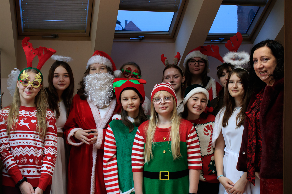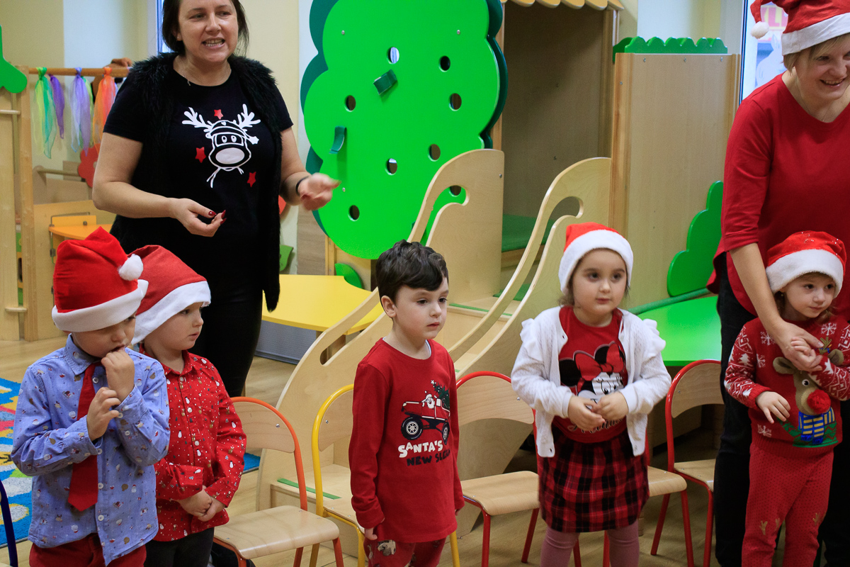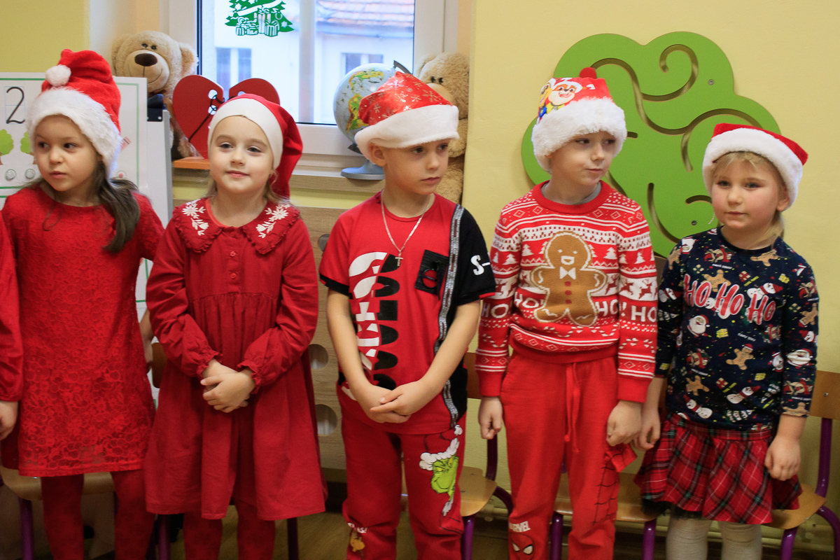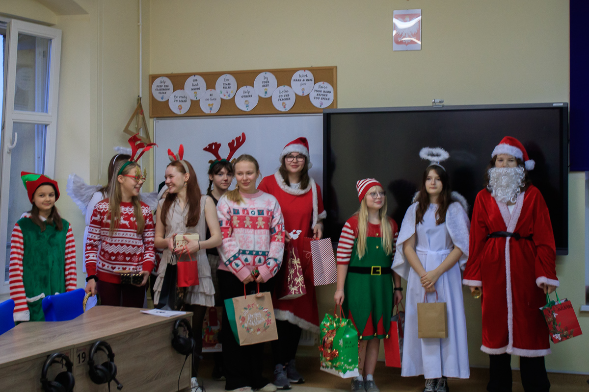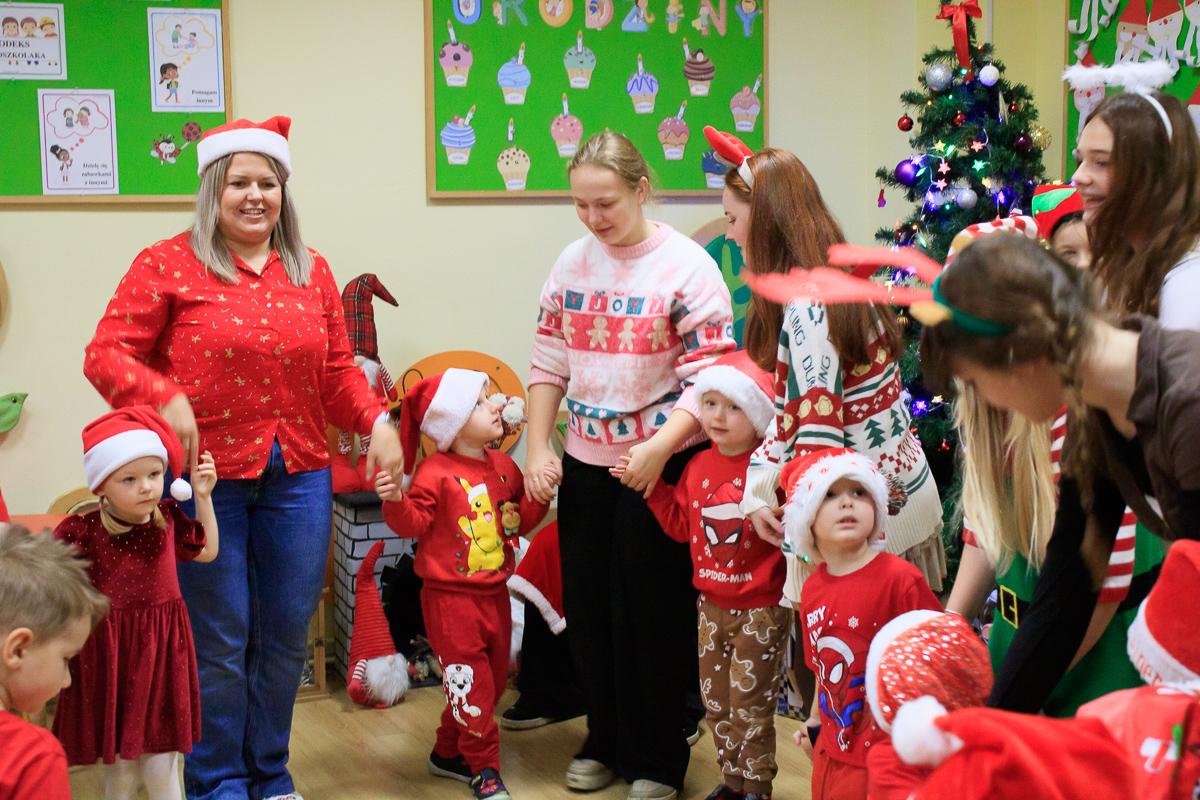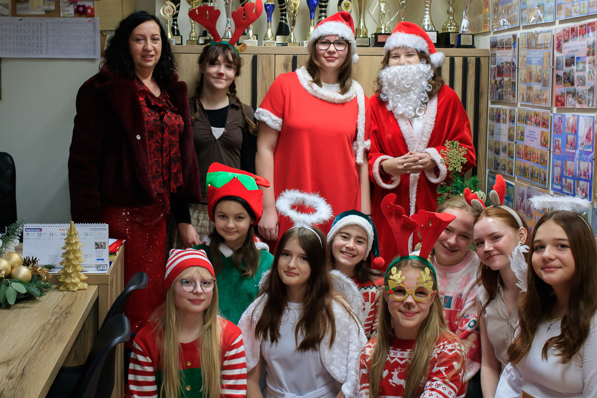 Po zakończeniu wizyt w budynku szkoły, barwny orszak przemaszerował do przedszkola, gdzie dzieciaki były bardzo zaskoczone niecodziennymi gośćmi. Były piosenki, życzenia i wierszyki dla Mikołaja oraz oczywiście prezenty i wspólna zabawa. Uczniom i przedszkolakom towarzyszyła także dyrektor szkoły – Beata Jankiewicz.