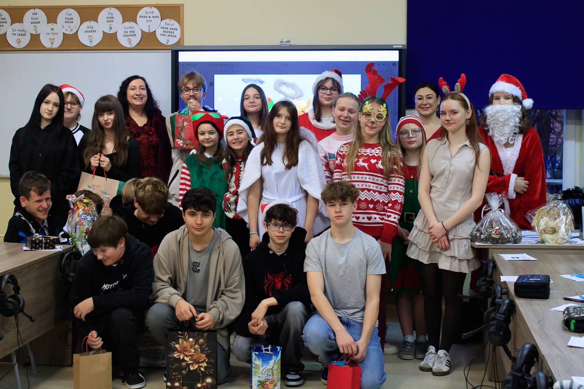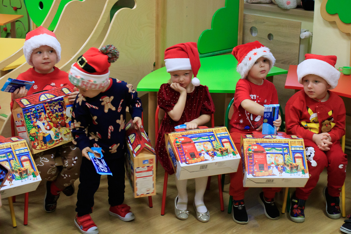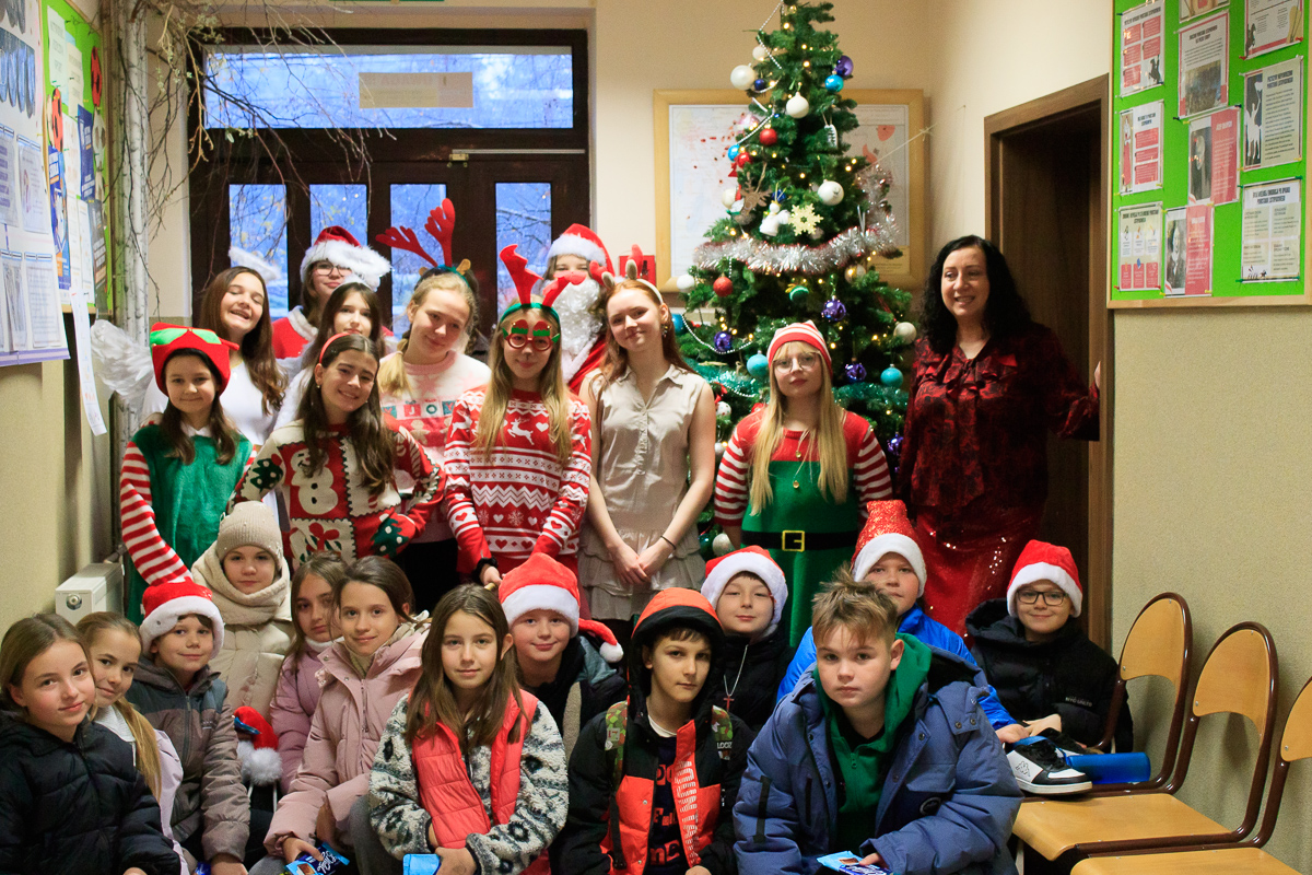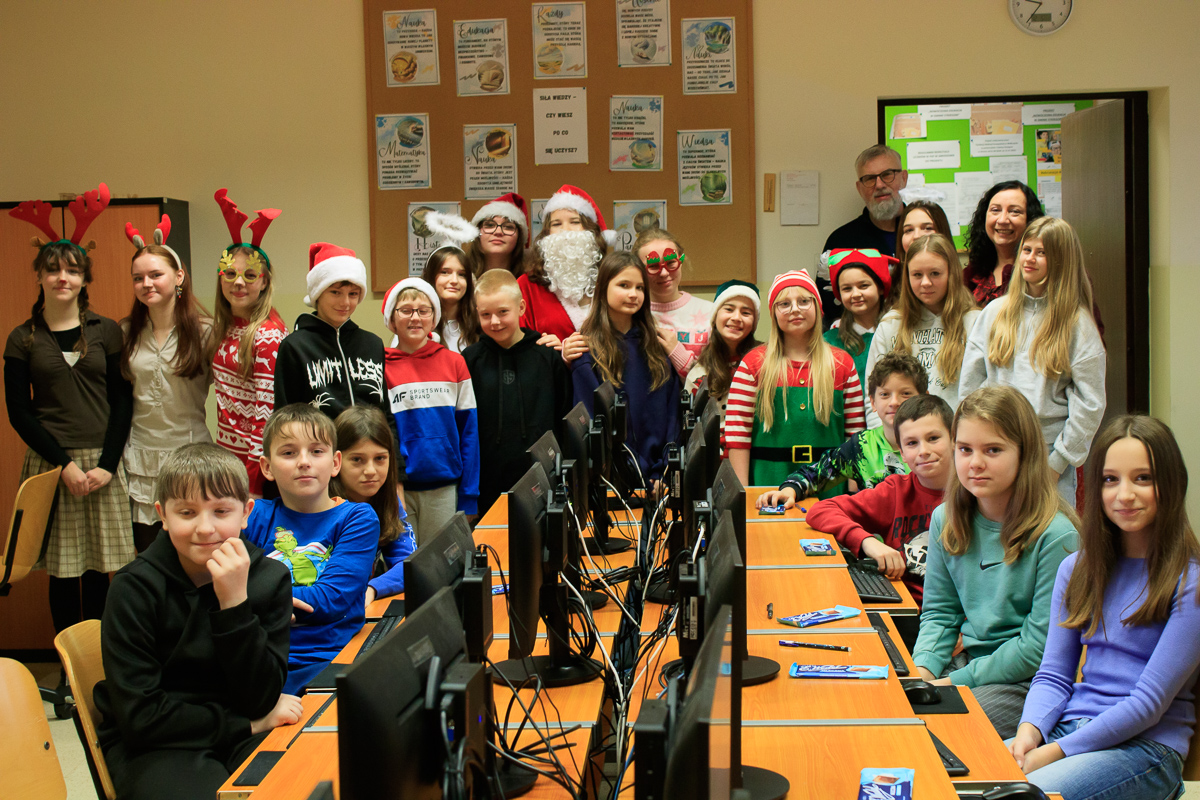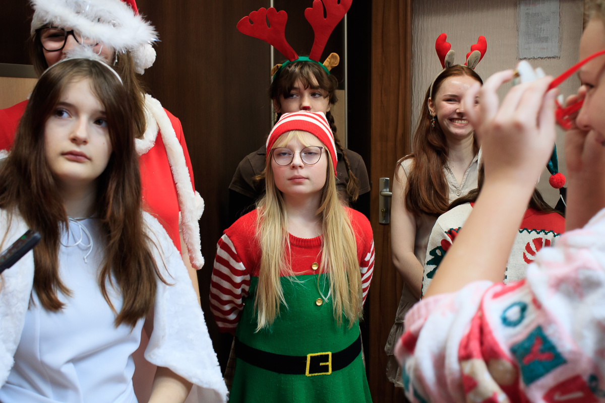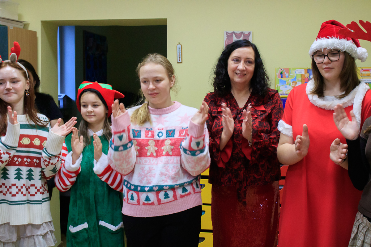 Po zakończeniu wizyt w budynku szkoły, barwny orszak przemaszerował do przedszkola, gdzie dzieciaki były bardzo zaskoczone niecodziennymi gośćmi. Były piosenki, życzenia i wierszyki dla Mikołaja oraz oczywiście prezenty i wspólna zabawa. Uczniom i przedszkolakom towarzyszyła także dyrektor szkoły – Beata Jankiewicz.