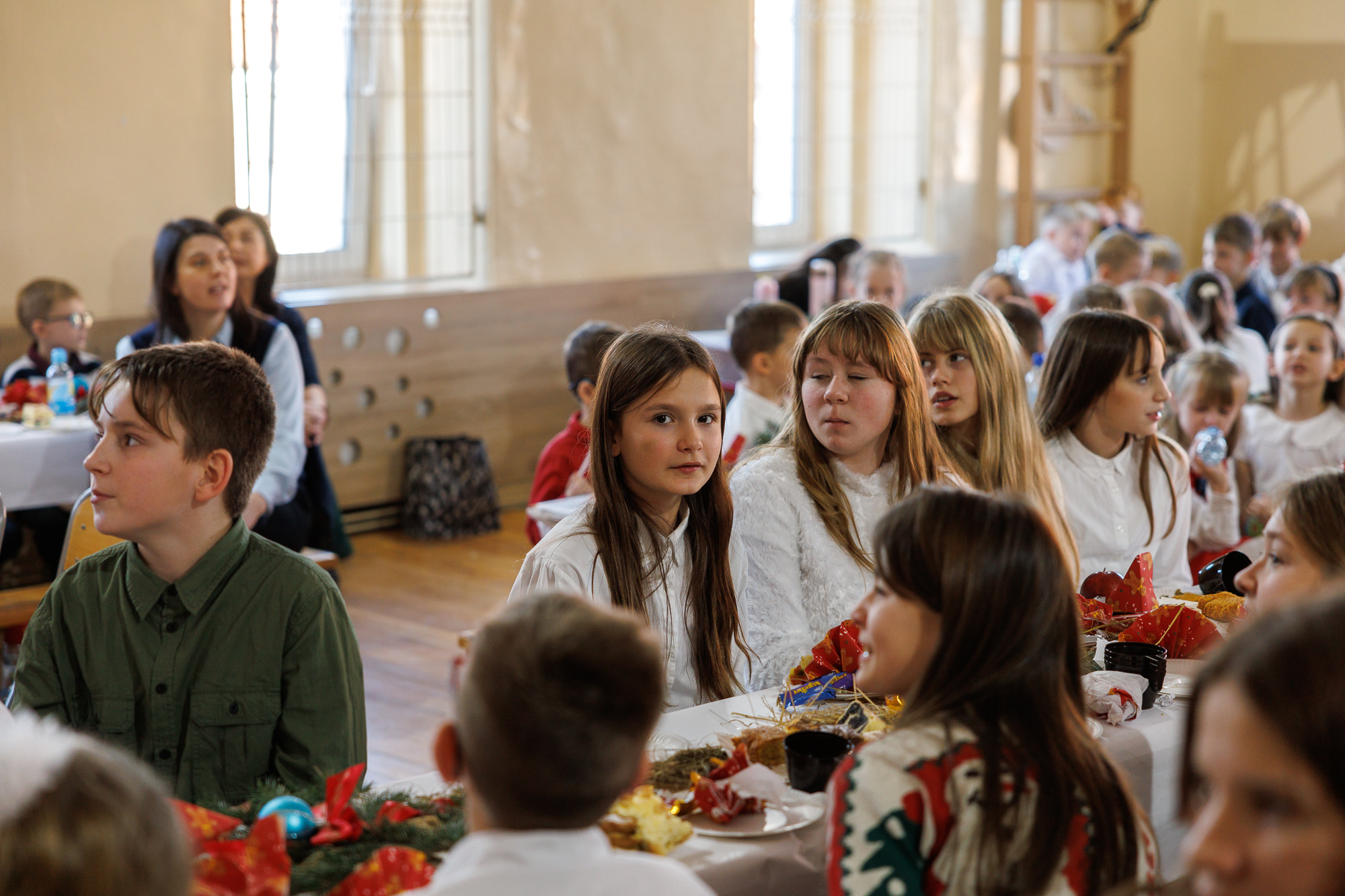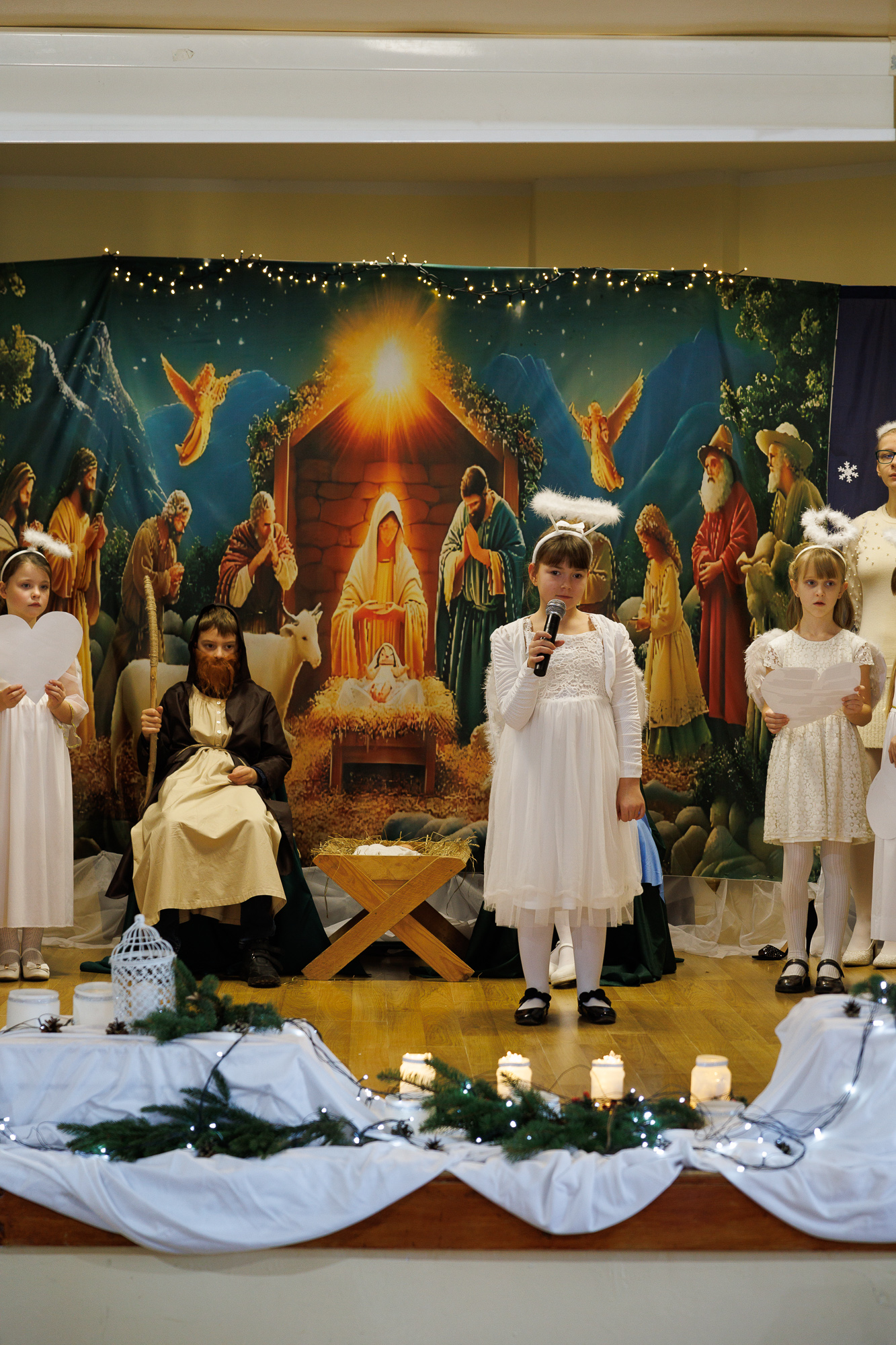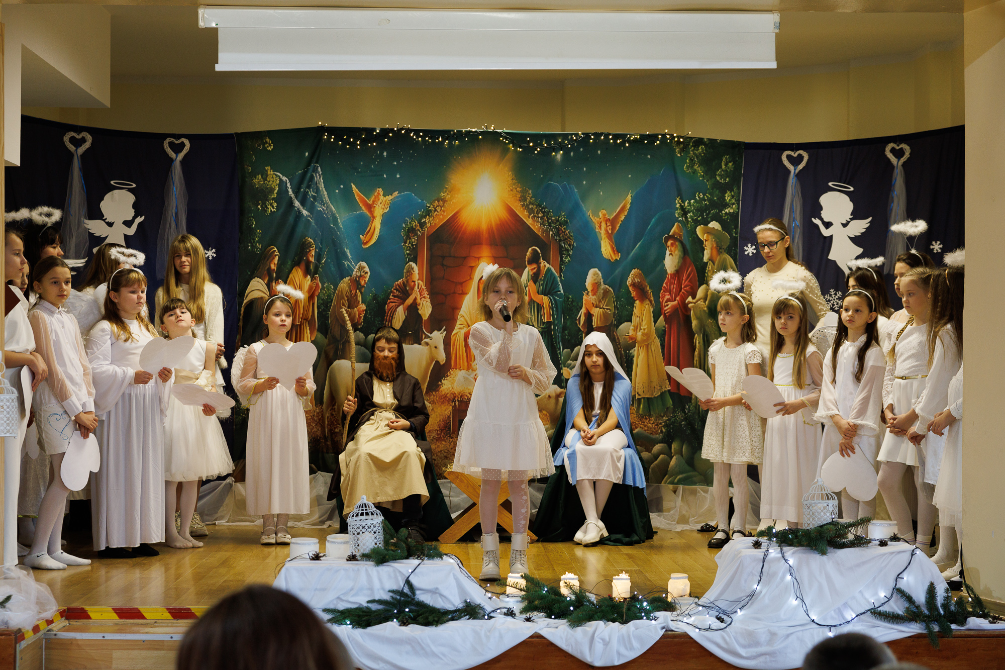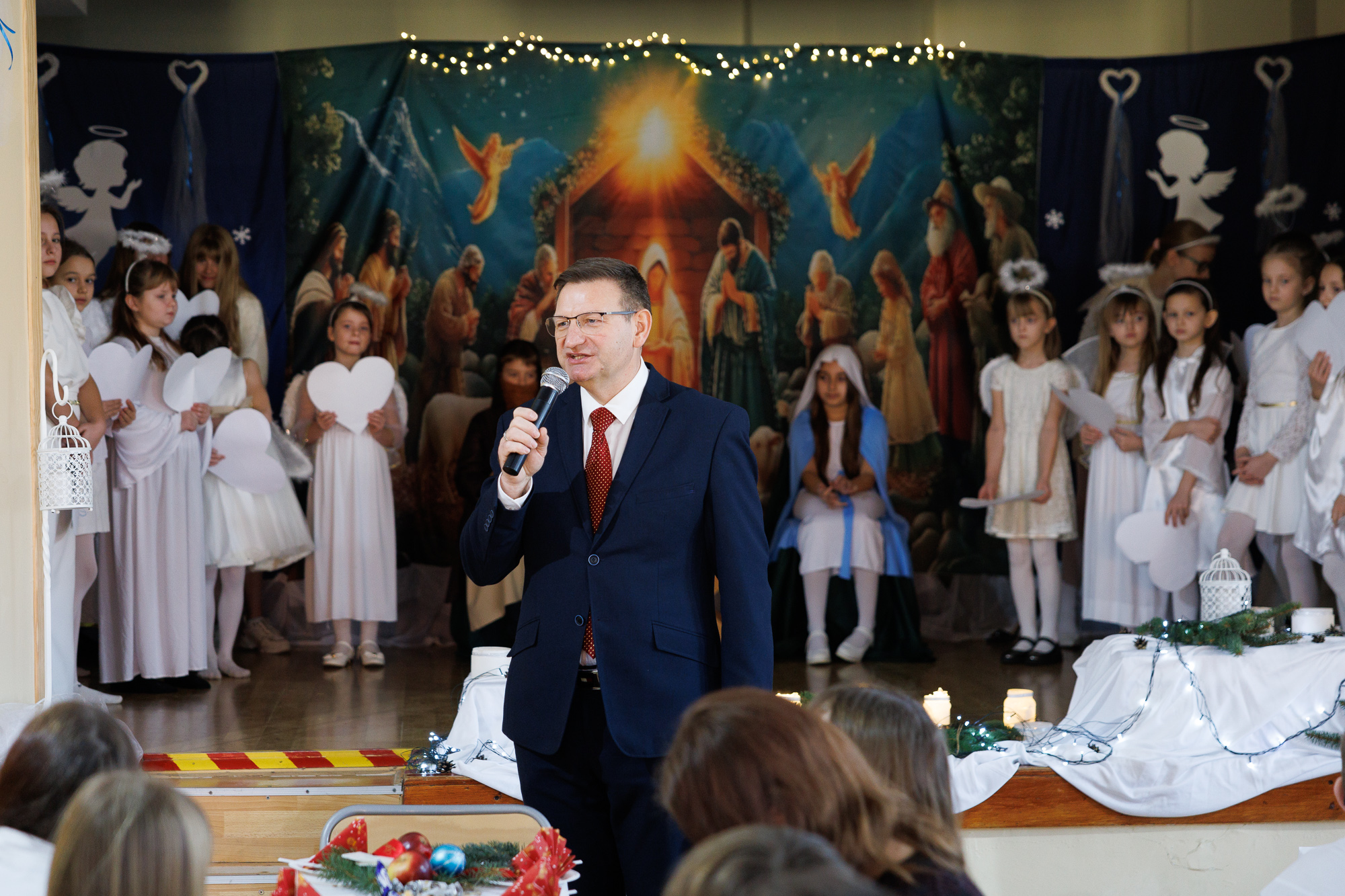 Przedstawienie bożonarodzeniowe wprowadziło uczniów, nauczycieli oraz zaproszonych gości w radosną atmosferę wigilii szkolnej i tradycyjnego wspólnego kolędowania, które zakończyły zajęcia szkolne przed zimową przerwą świąteczną.