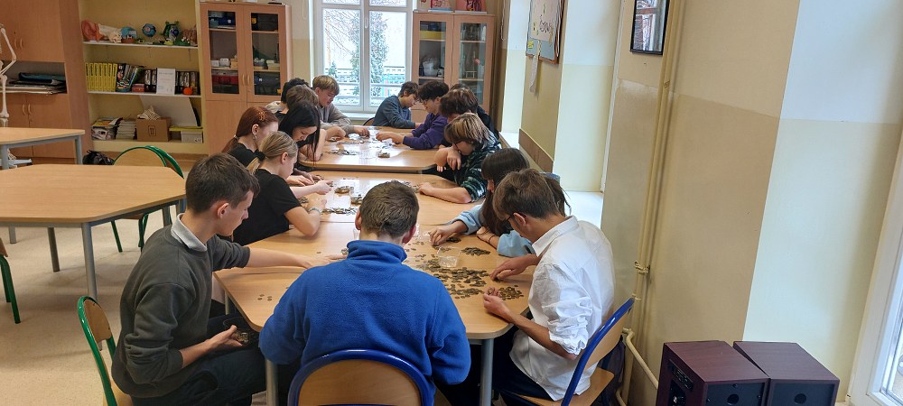 W tym roku, liczeniem monet zajęli się niezawodni ósmoklasiści, którzy także odpowiednio zapakowali monety w pięć kartonów.