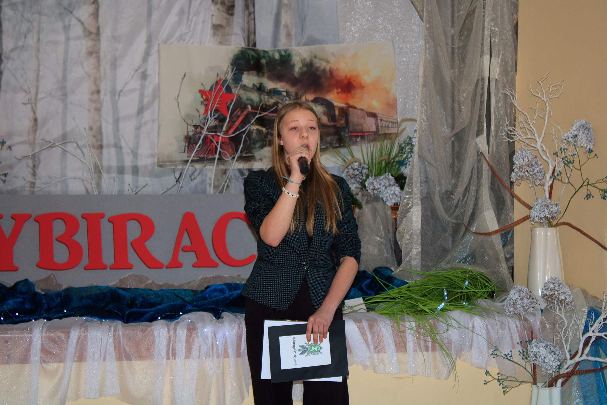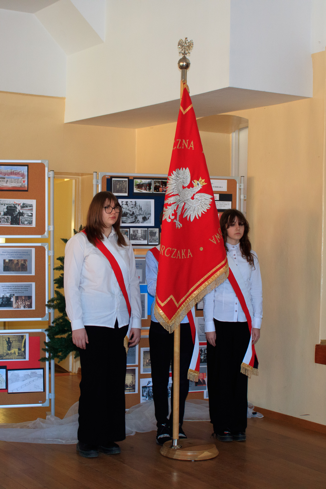 Uczestnicy ze wzruszeniem wysłuchali historii praprababci Magdy – Leonii Łopaty, która wraz z trojgiem dzieci zesłana została w rejon Semipałatyńska. Wysłuchali wspomnień czytanych przez ósmoklasistki – Aleksandrę Hućko i Zuzannę Gesing-Miśkiewicz oraz recytacji wiersza i piosenki w wykonaniu Zuzanny Rychel z kl. 5a. Nad całością uroczystości pracowała nauczycielka historii – Małgorzata Januś.