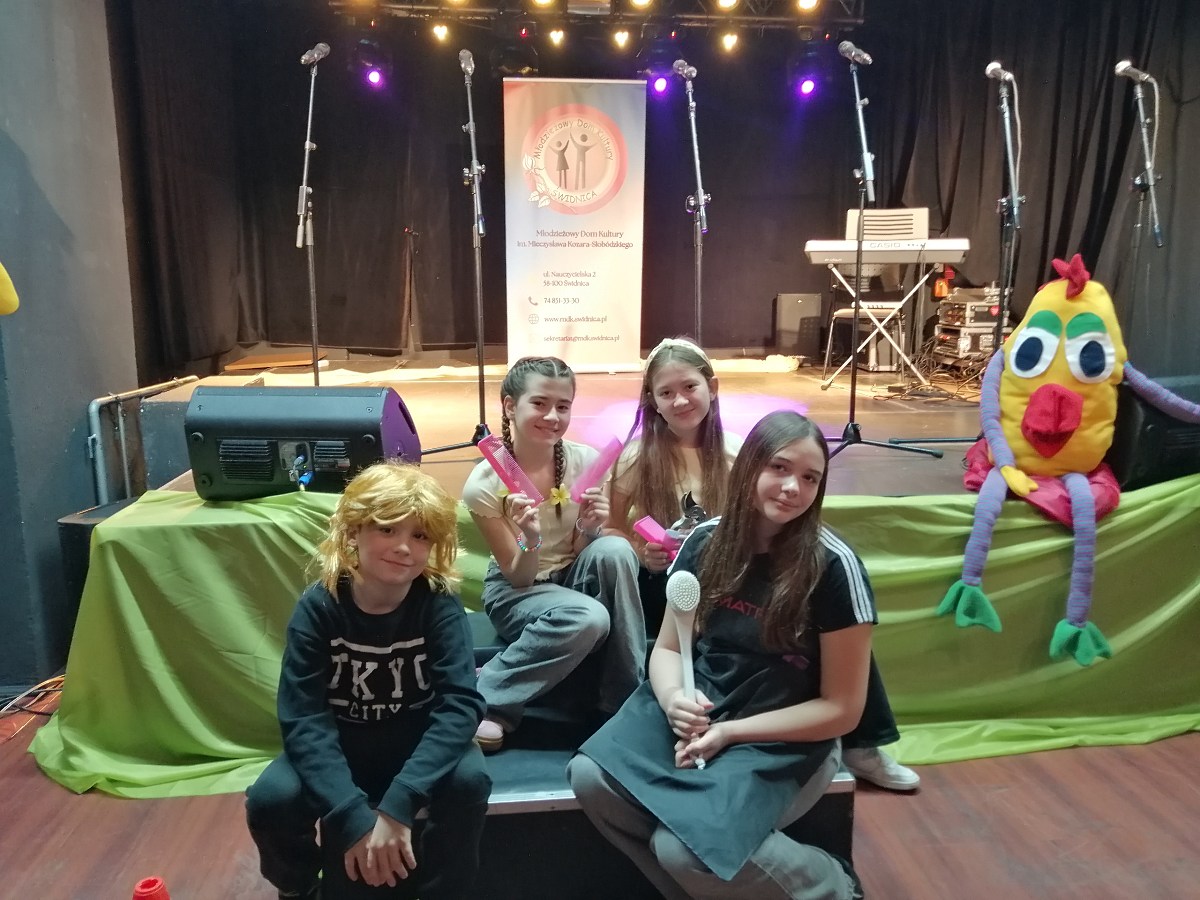 Zespół z klasy 4a pod nazwą „Poszukiwacze humoru” w składzie: Layla Jarzmik, Krystian Maicki i Karol Pieszko zaprezentowali publiczności kabaretowe wykonanie znanej piosenki pt. „Prząśniczka” do muzyki Stanisława Moniuszki. Młodszej grupie niestety nie udało się zdobyć żadnej nagrody, ale swoim wykonaniem zwrócili uwagę szanownego jury oraz zdobyli gromkie brawa publiczności.